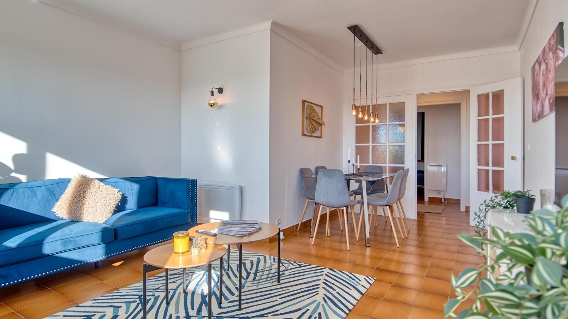 Salle de séjour, cuisine, 3 chambres et 1 salle de bain avec douche.