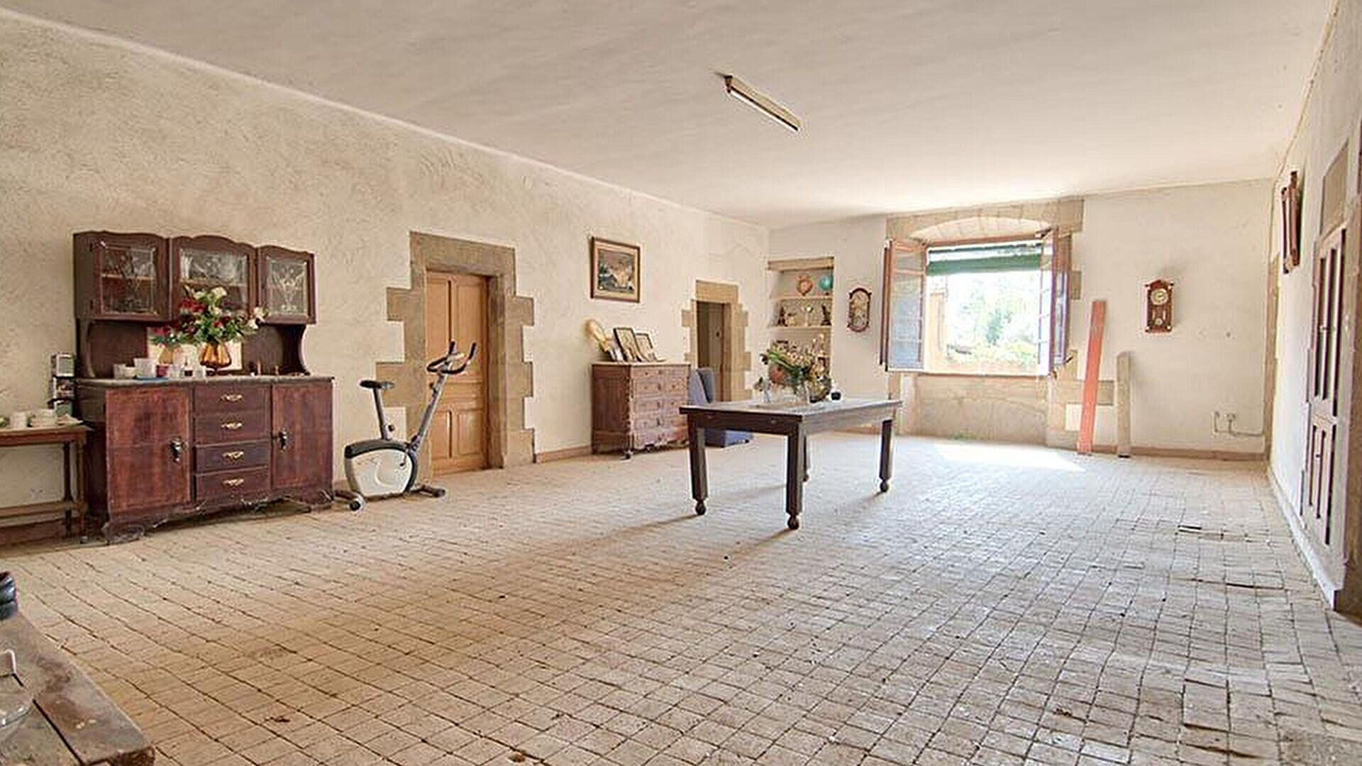Jardin, 2 terrasses, cour, salle à manger, salon, cuisine, 5 chambres, 1 salle de bain avec douche, débarras, grenier et 7 entrepôts.