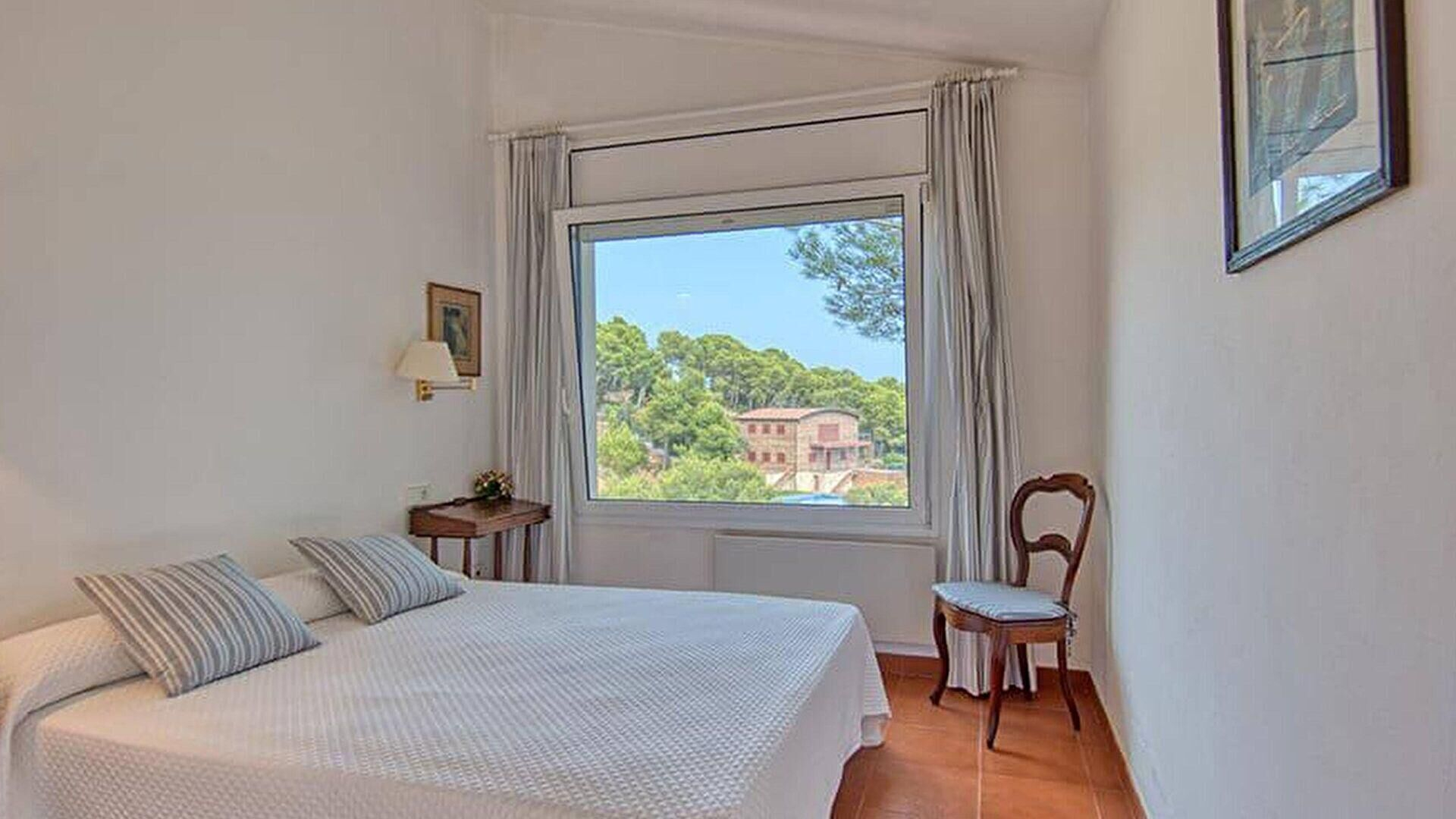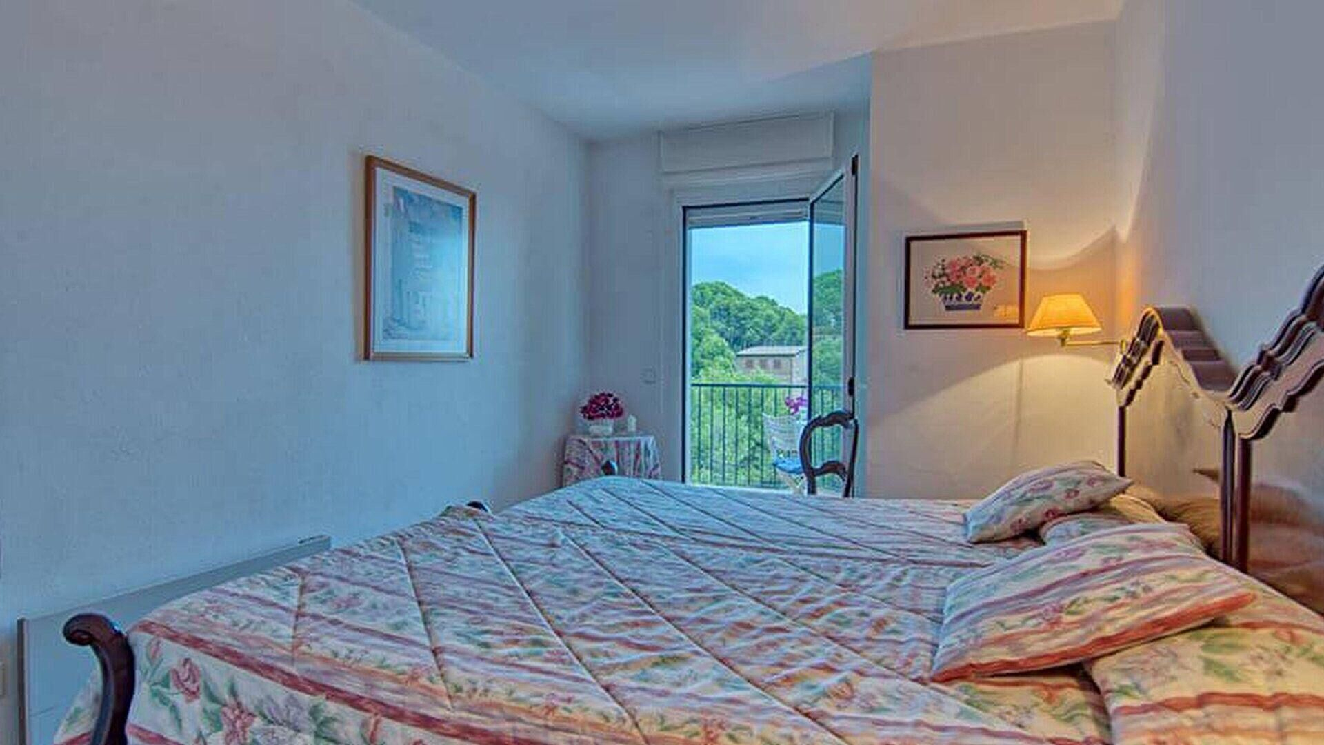 - Chambre avec 2 lits simples et sortie sur la terrasse.