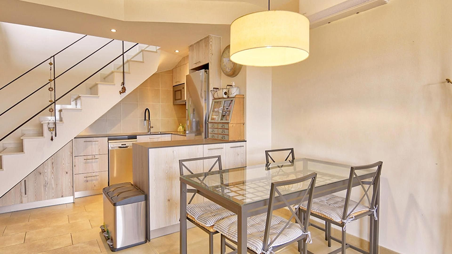 - Cuisine américaine avec plaque de cuisson vitrocéramique.