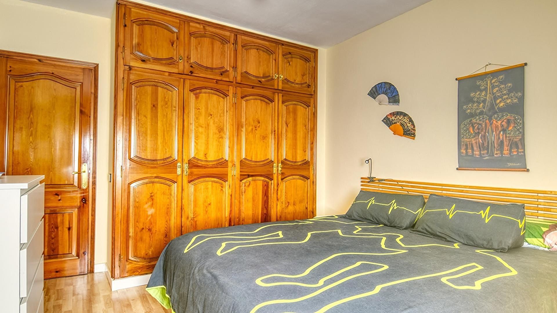 - Chambre avec 1 lit double, ventilateur de plafond et sortie sur la terrasse-solarium.