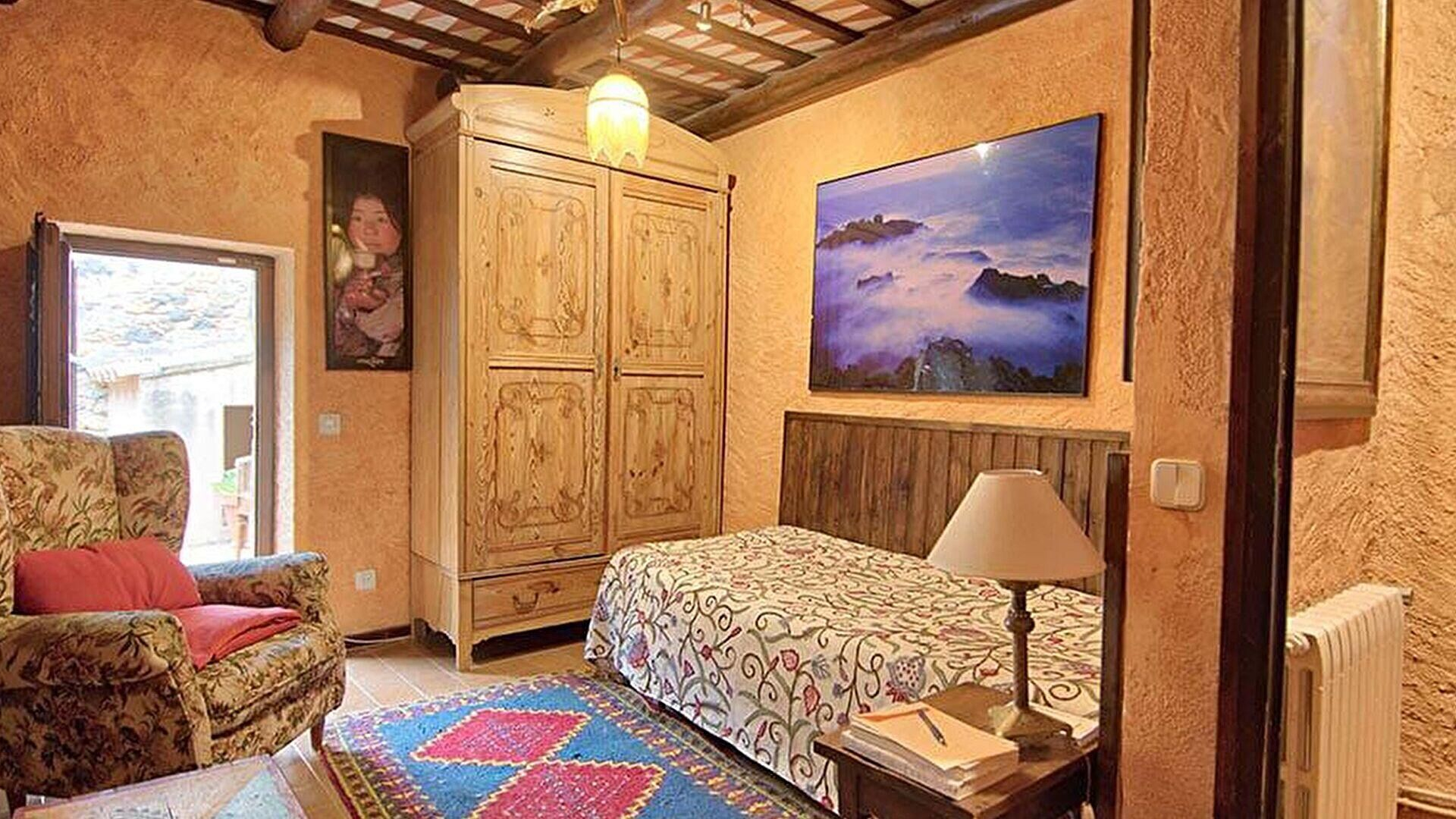 - Chambre avec 1 lit double, salle de bain (en suite) et sortie au jardin privé.