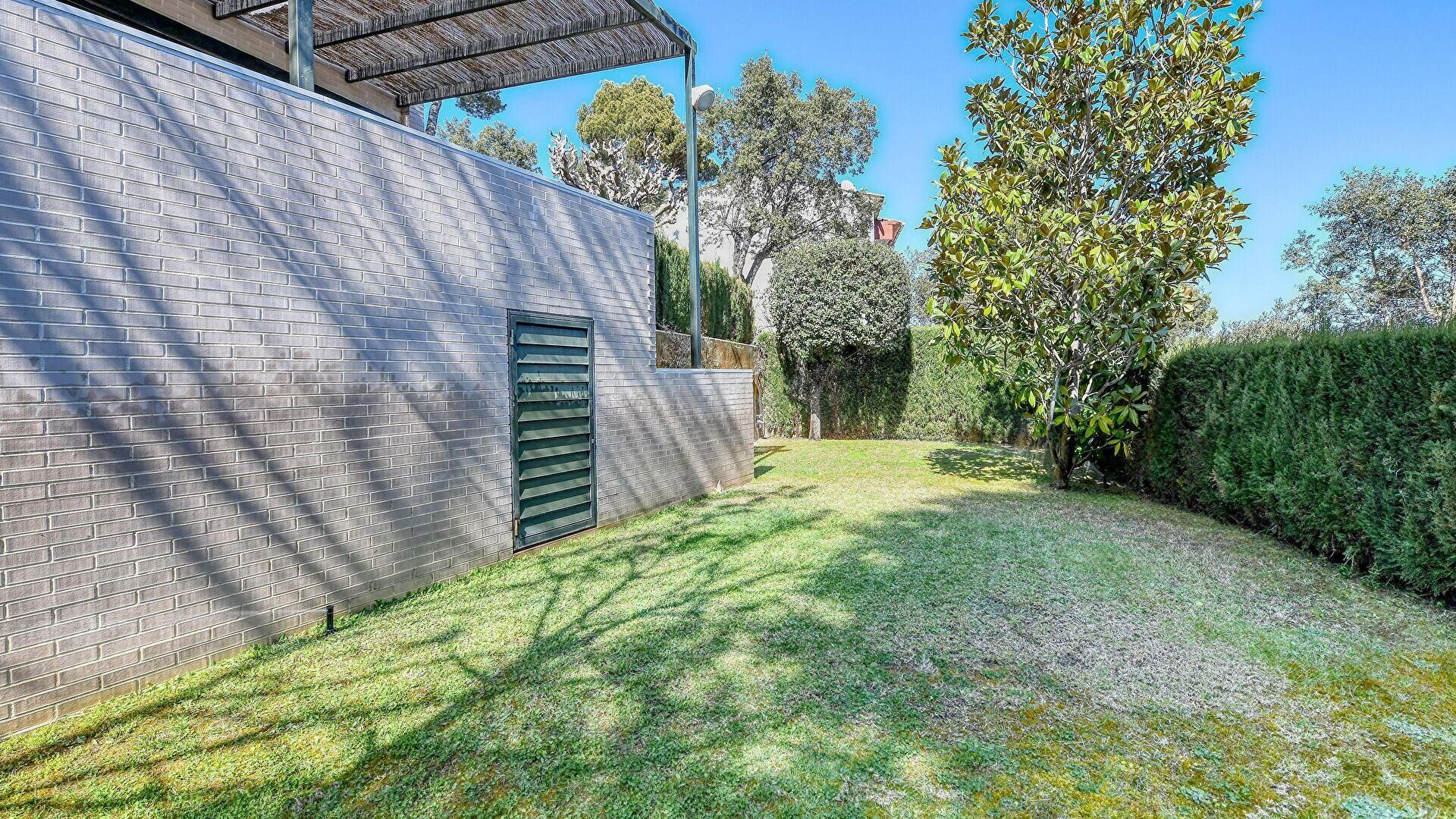 Jardín privado, piscina comunitaria y muebles de terraza.