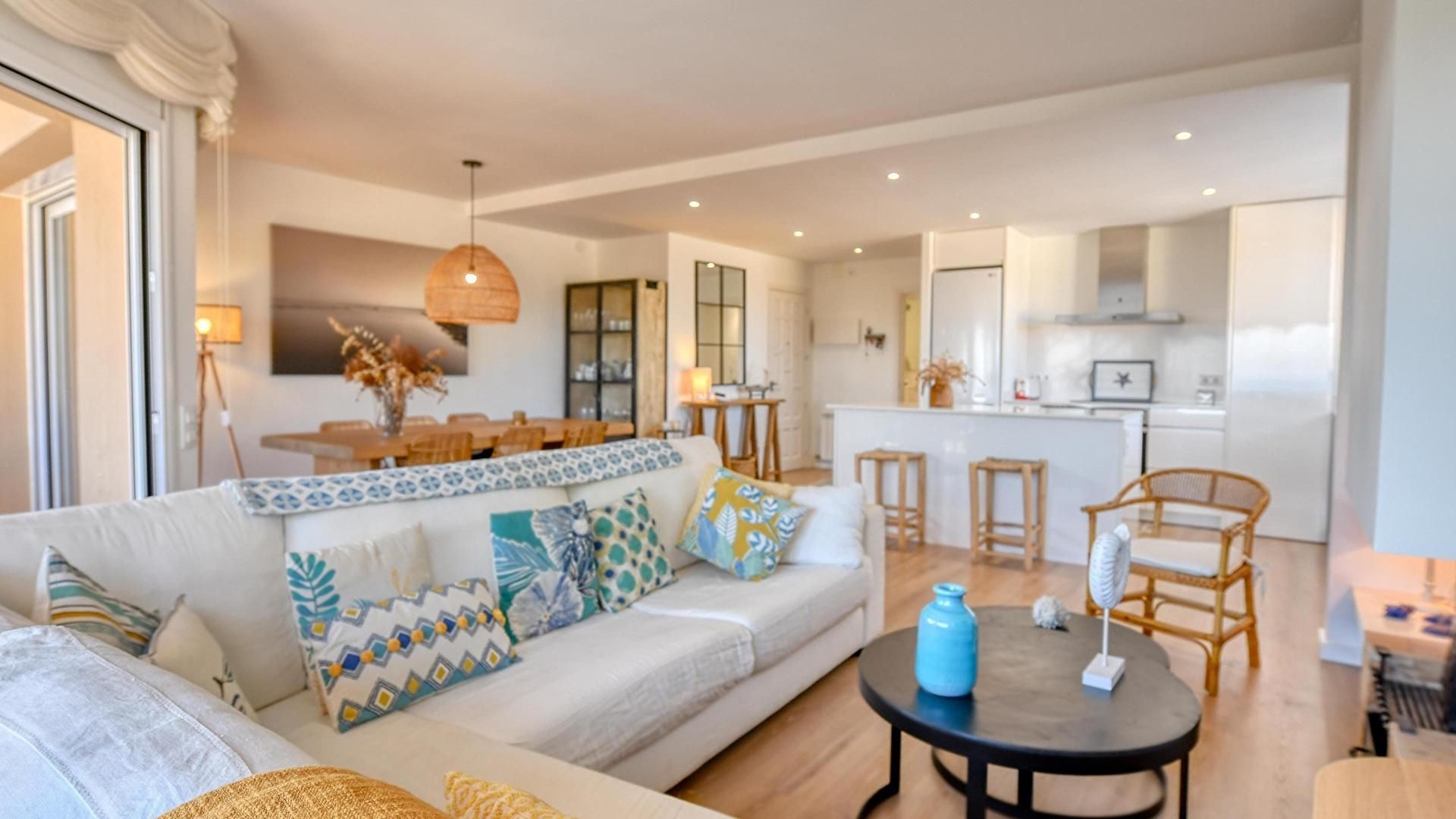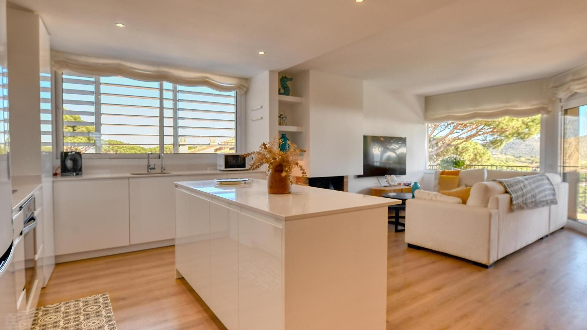 - Comedor-estar con televisor, salida a la terraza y vistas al mar.
