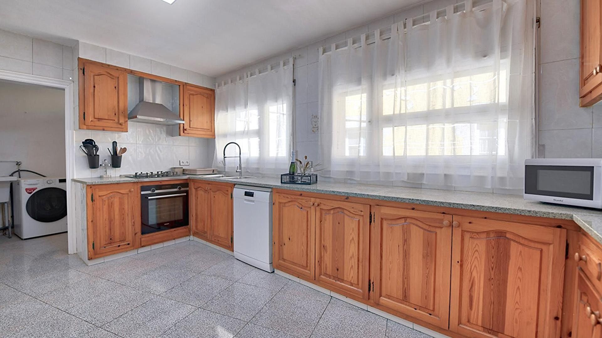 Comedor-estar, cocina office, 4 dormitorios, 1 cuarto de baño, 1 baño con ducha, 1 aseo, cuarto de planchar y despensa.