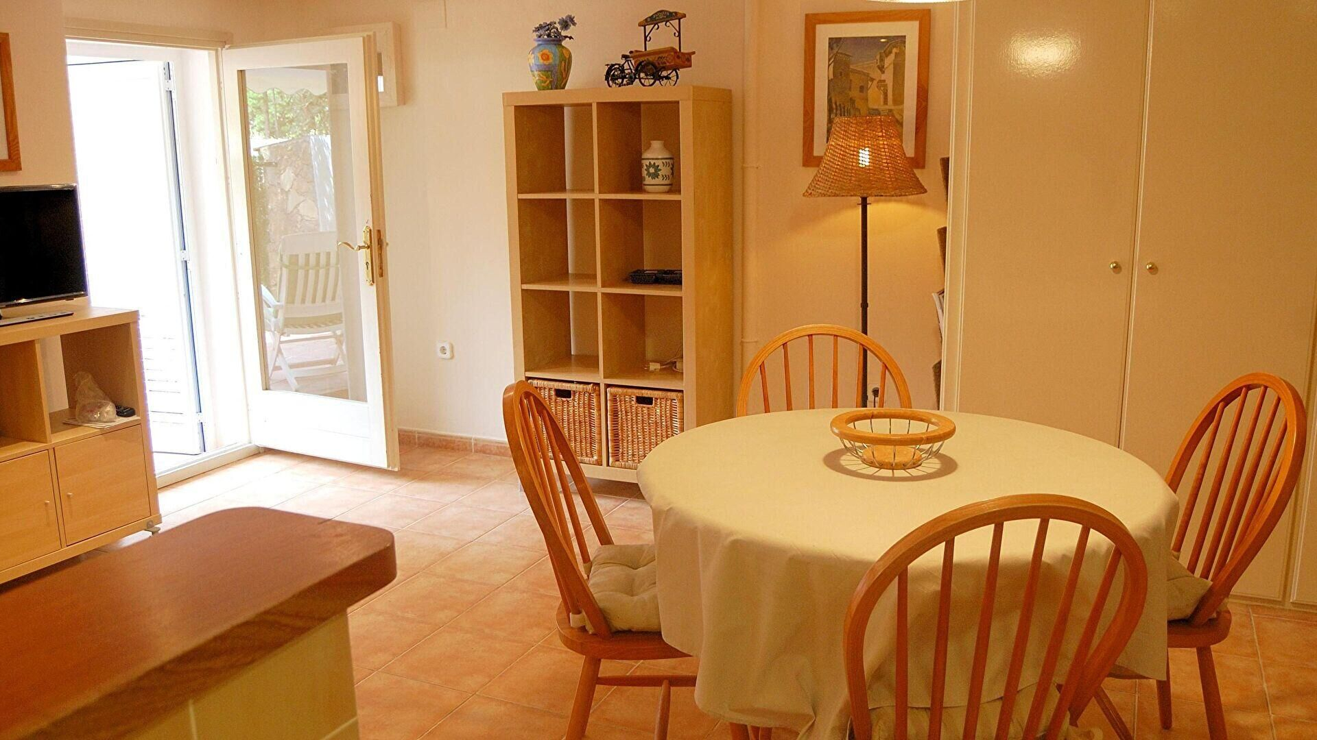 - Comedor-estar con televisor y salida a la terraza.