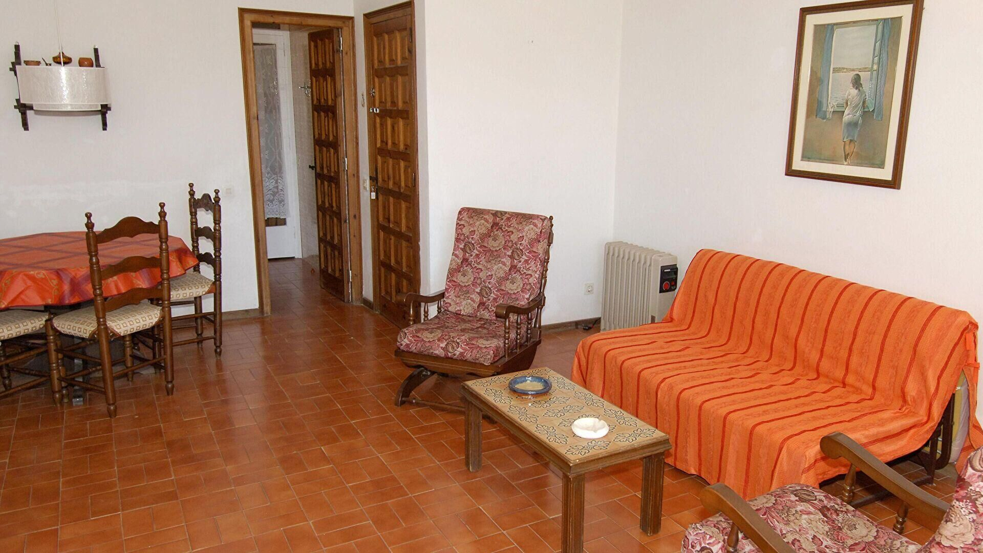 • Comedor-estar con 1 sofá cama de matrimonio, chimenea, salida a la terraza y televisor.