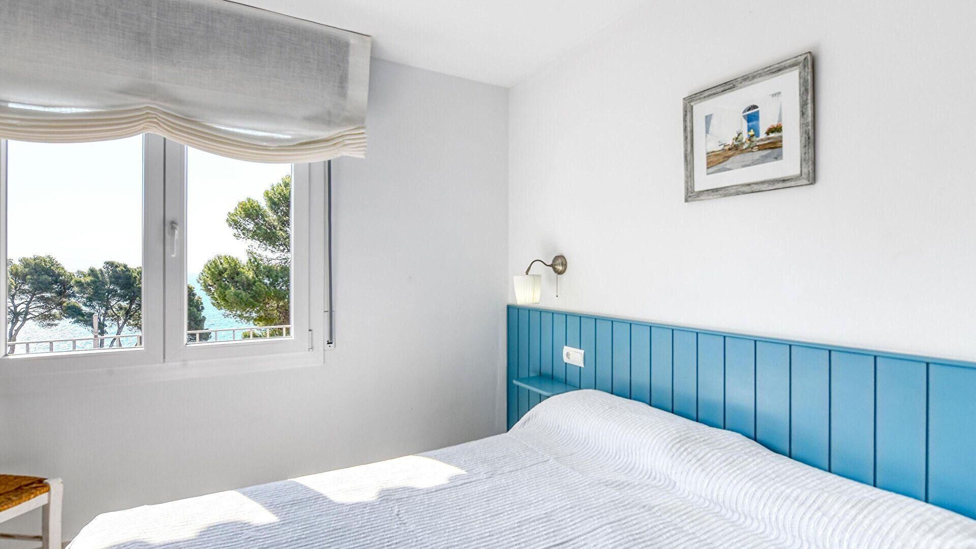 • Dormitorio con 1 cama de matrimonio y vistas al mar.