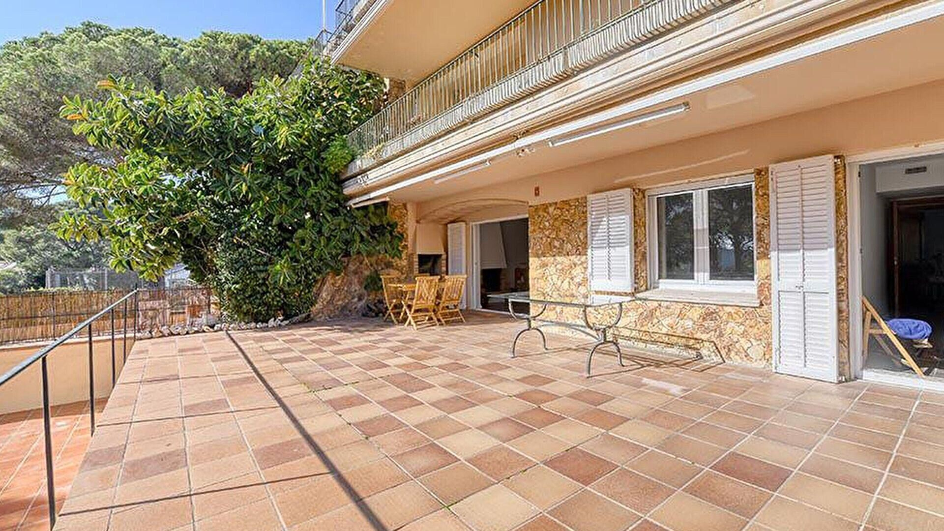 - Sala d'estar amb sortida a la terrassa, sortida al jardí comunitari, vistes al mar i llar de foc.