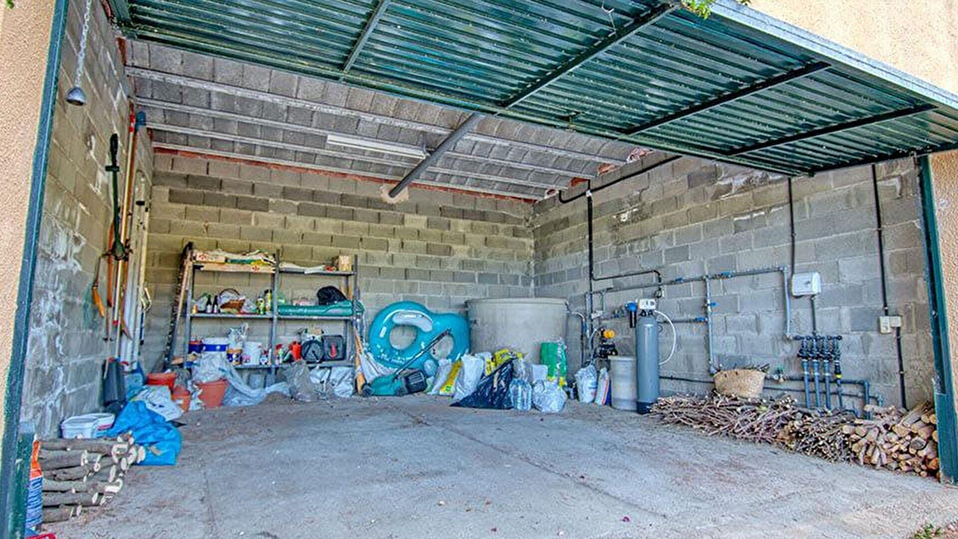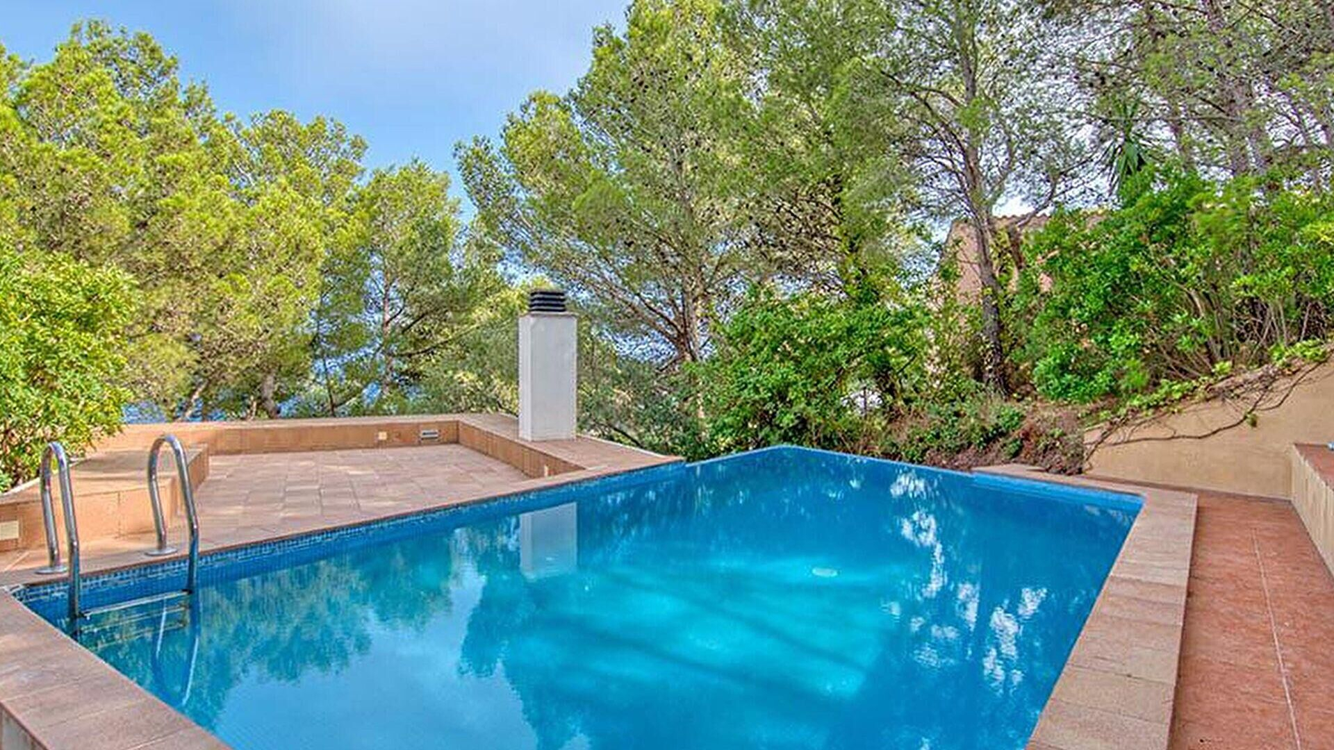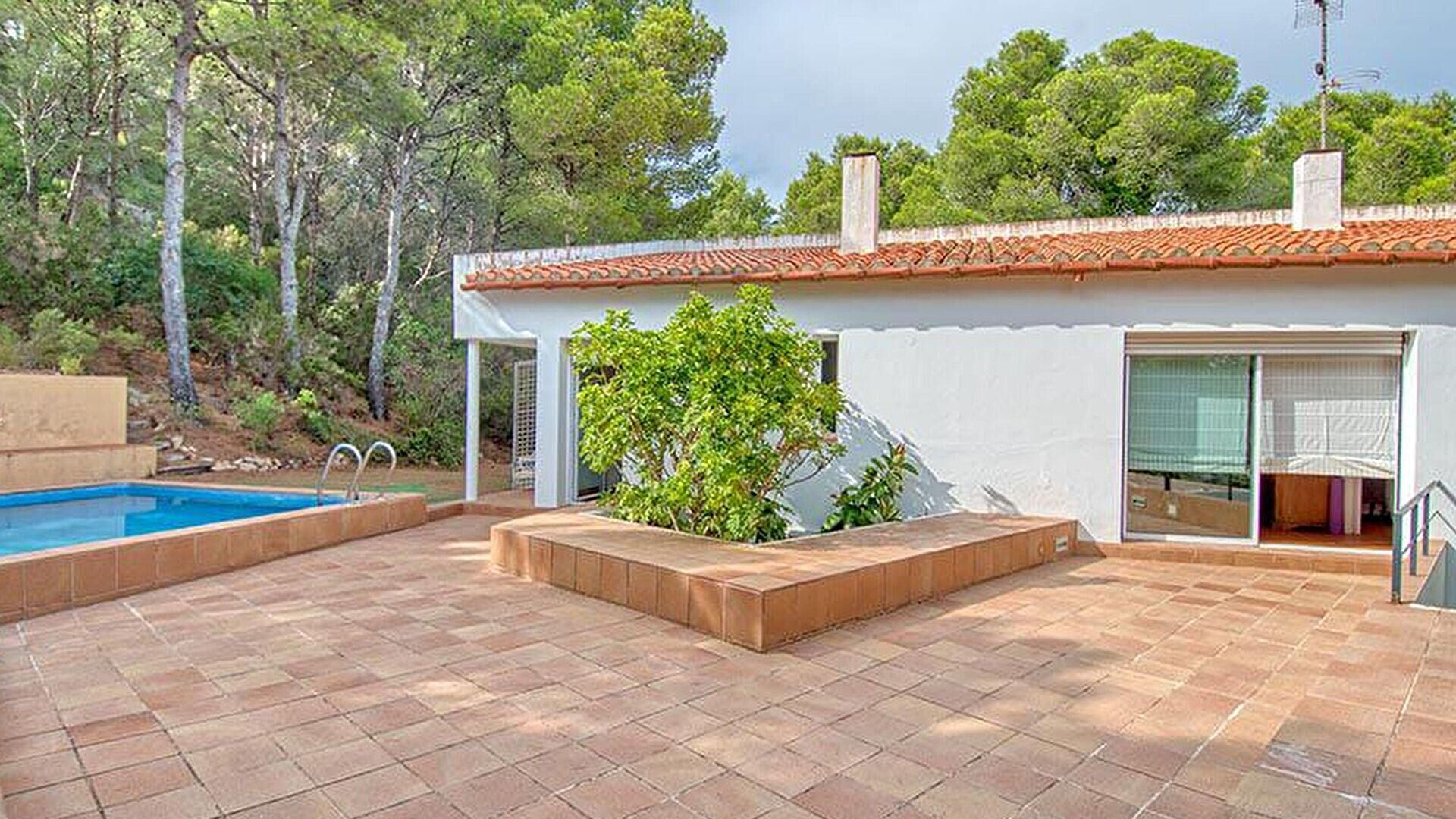 Jardí amb piscina, terrassa, solàrium, porxo, menjador, sala d'estar, cuina, 4 dormitoris, 1 bany amb banyera, 3 banys amb dutxa, sala de joc, vestidor i garatge.