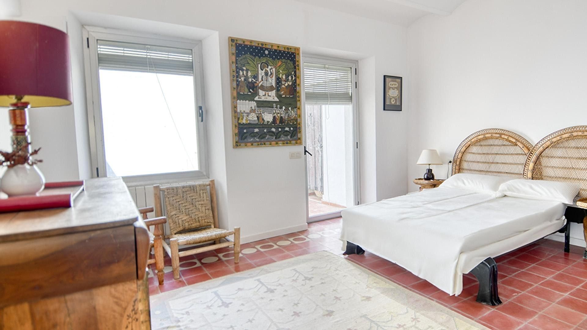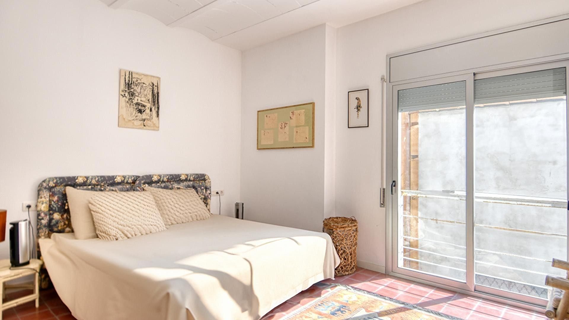 Planta 1- Dormitori amb 1 llit de matrimoni i sortida a la terrassa.