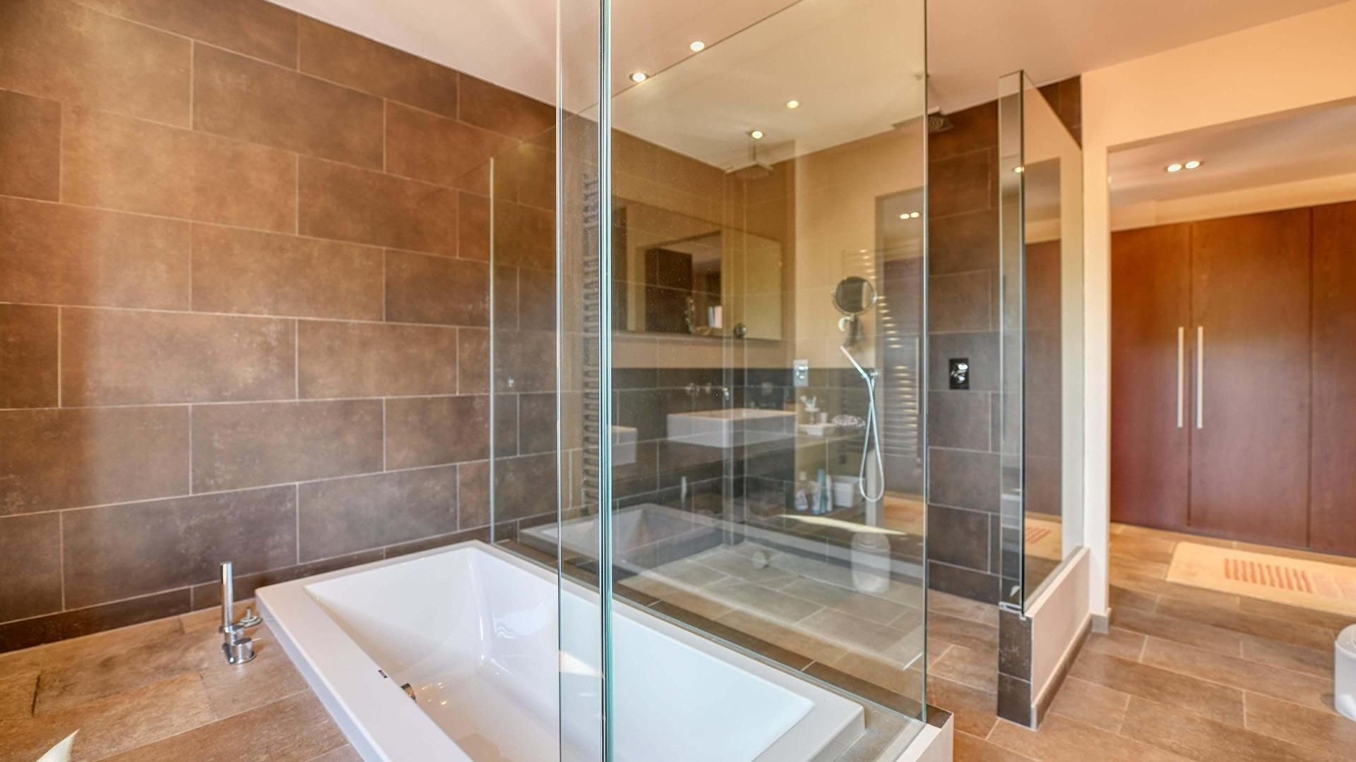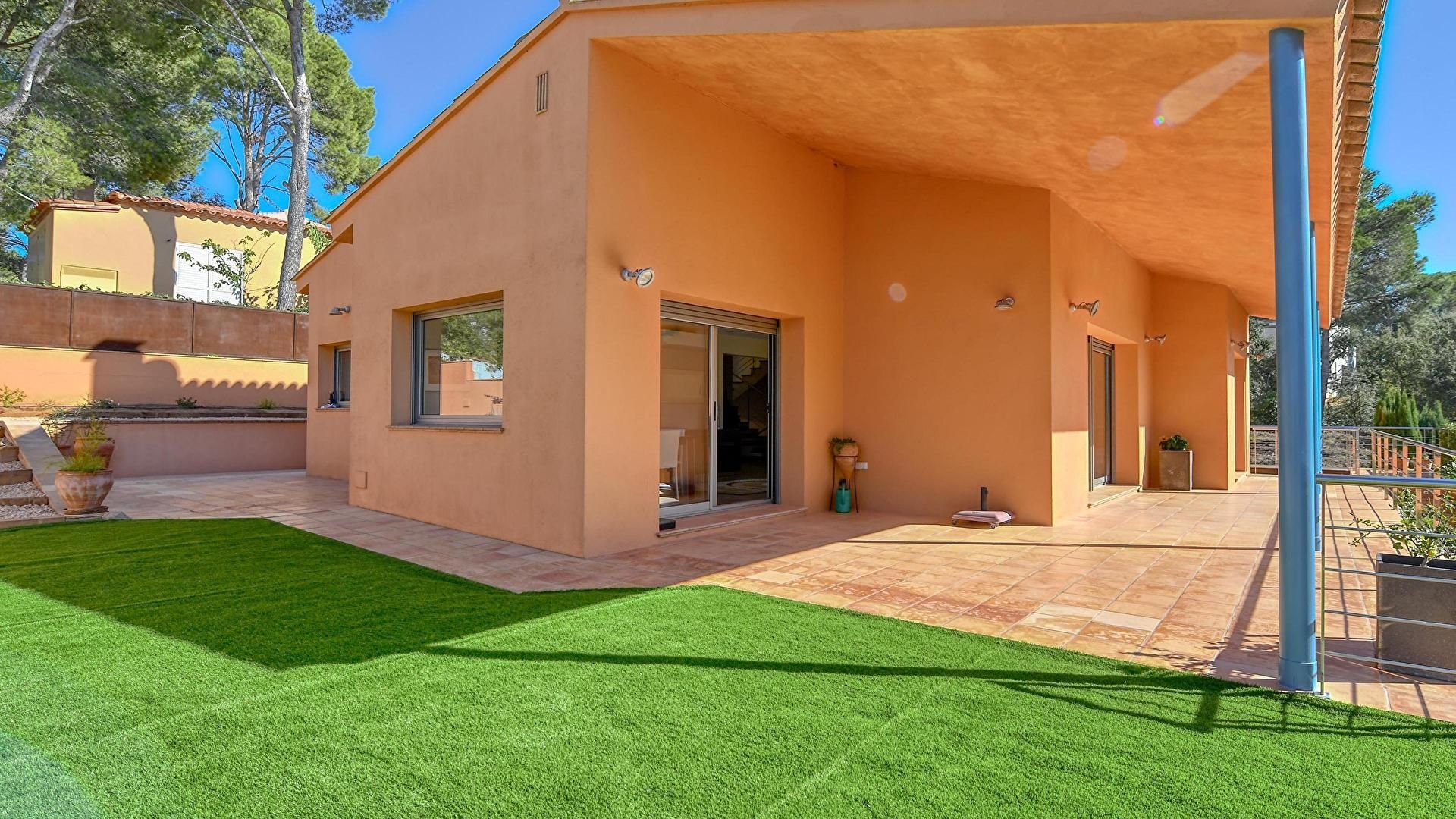 Jardín con piscina, comedor-estar, cocina, 5 dormitorios, 1 cuarto de baño, 3 baños con ducha, vestidor, garaje y sala de máquinas.