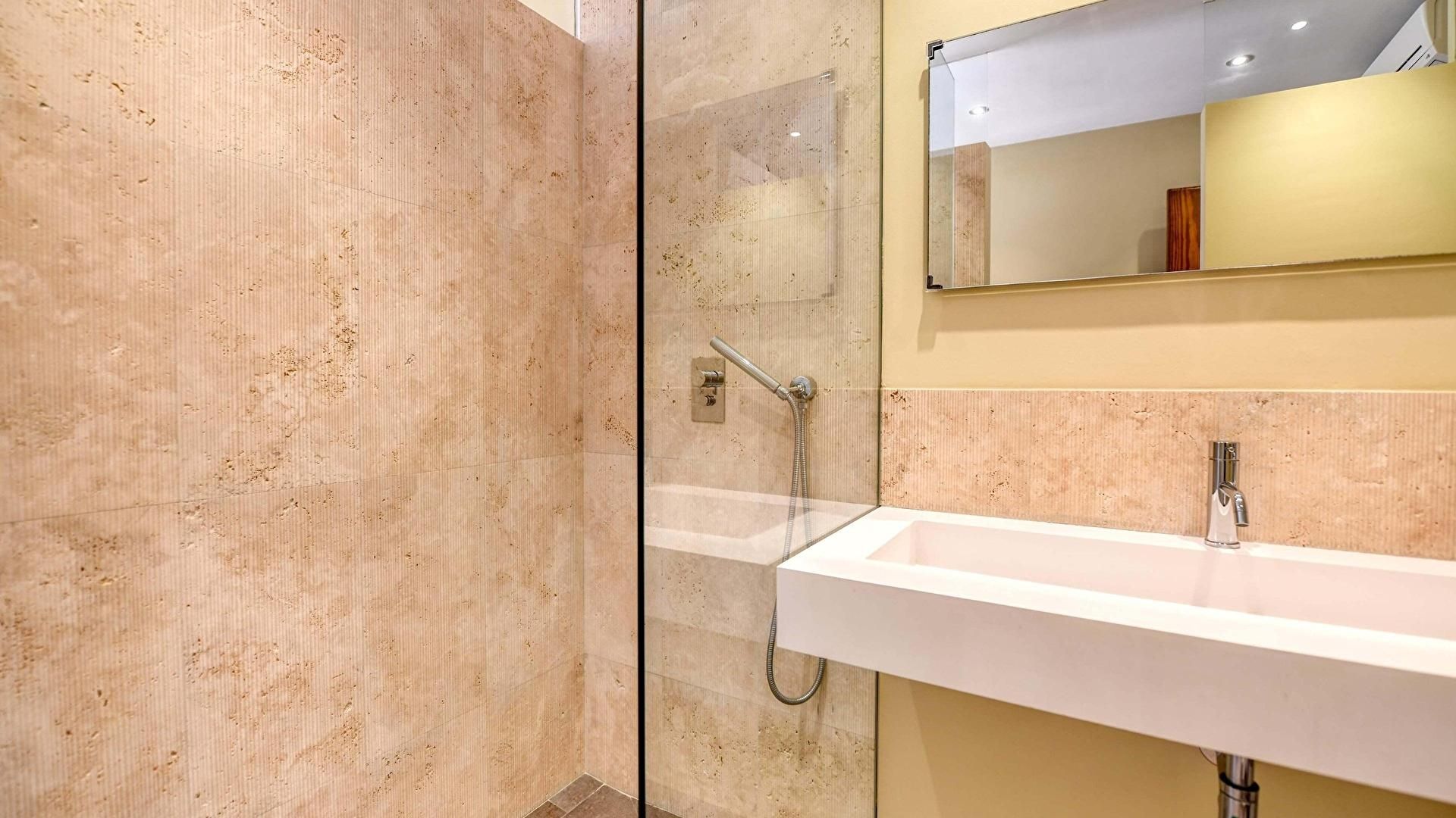 - Dormitorio con 1 cama de matrimonio, aire acondicionado frío y caliente con termostato independiente y baño con ducha (en suite).