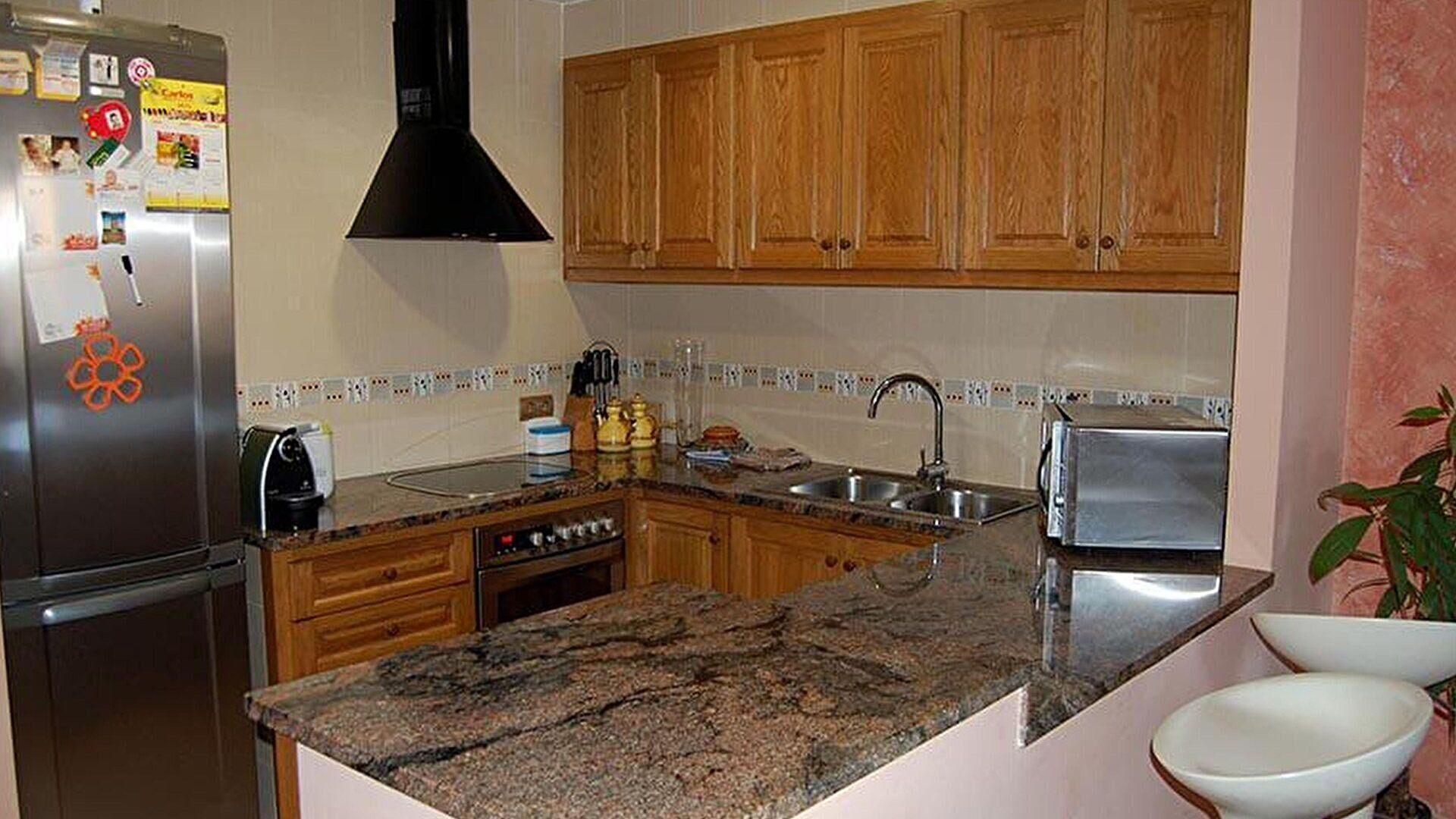 - Cocina con encimera vitrocerámica y horno.