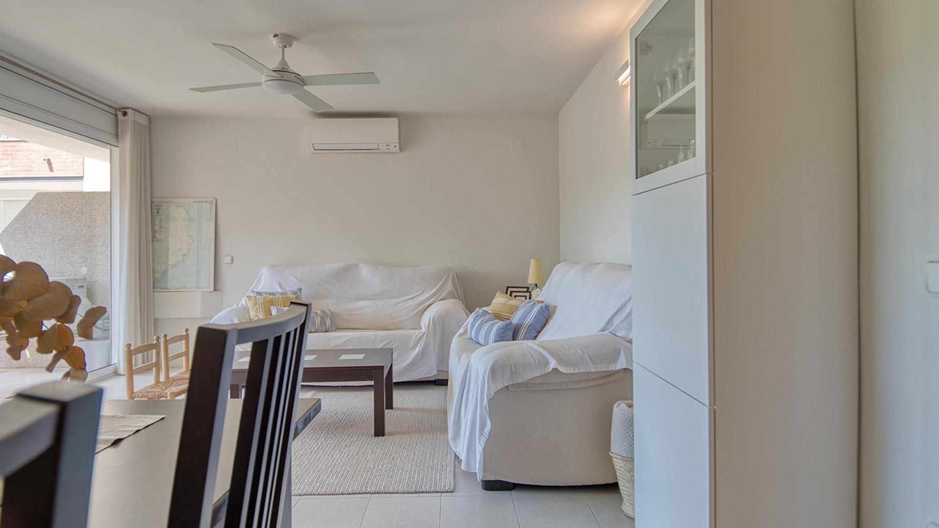 - Comedor-estar con aire acondicionado frío y caliente, salida a la terraza y ventilador en el techo.