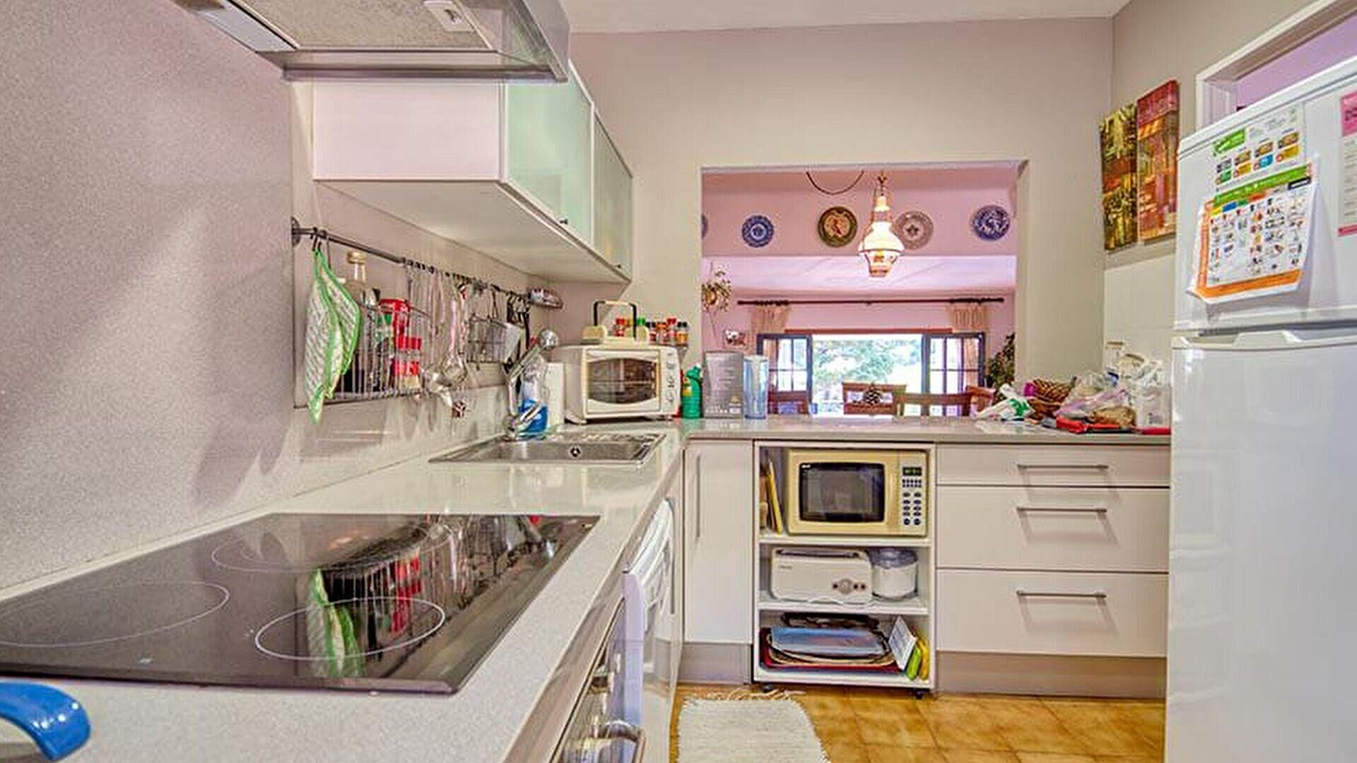 Cocina americana con encimera vitrocerámica.
