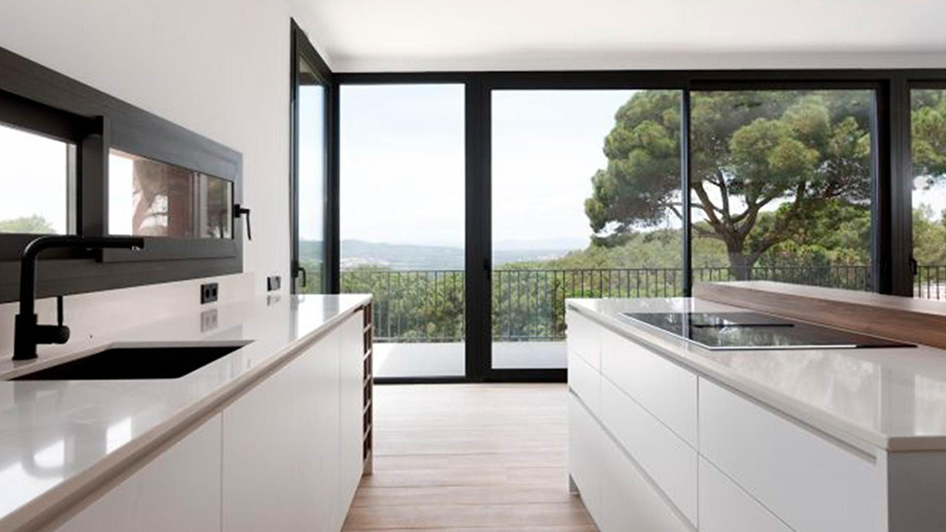 Kalte und heisse Klimaanlage durch Kanäle mit Aerothermie, Induktionskochfeld und Wasserenthärter.