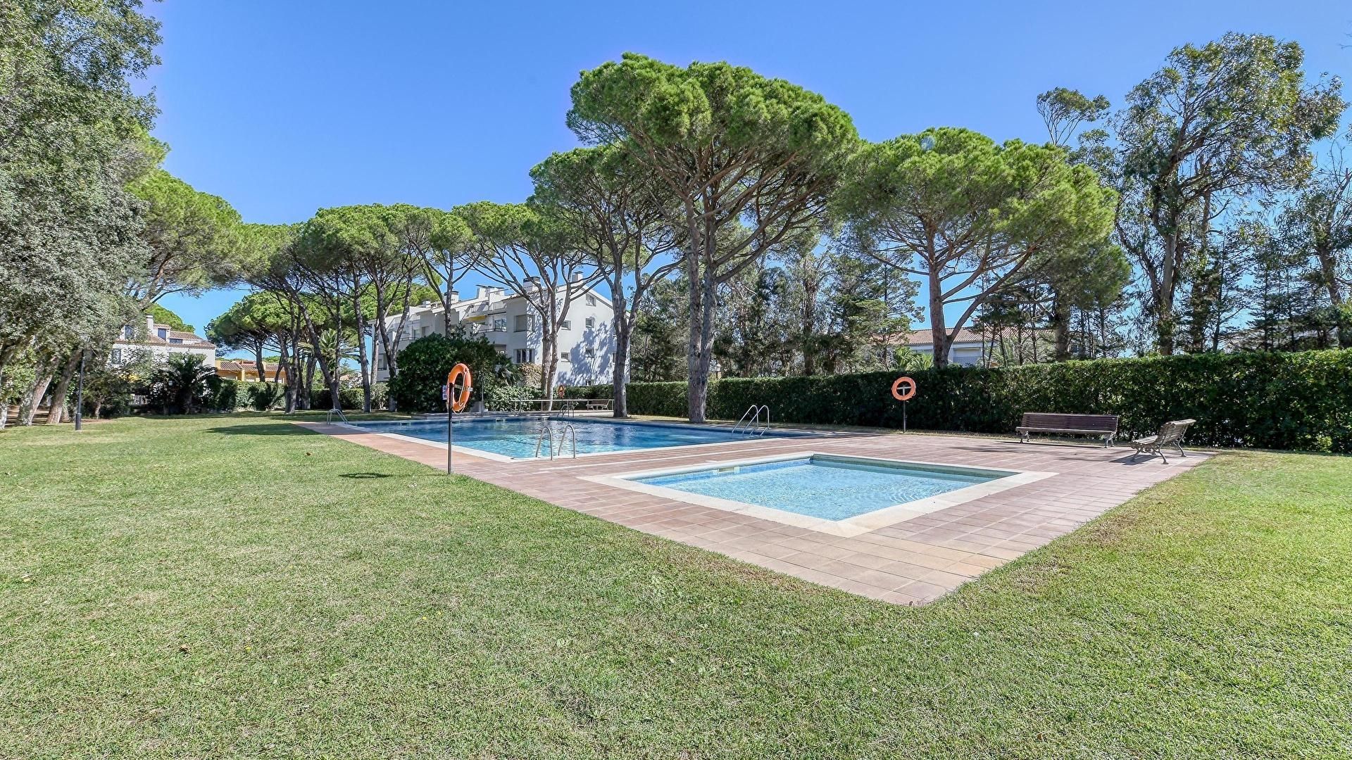 Gemeinschaftsgarten und Gemeinschaftspool.