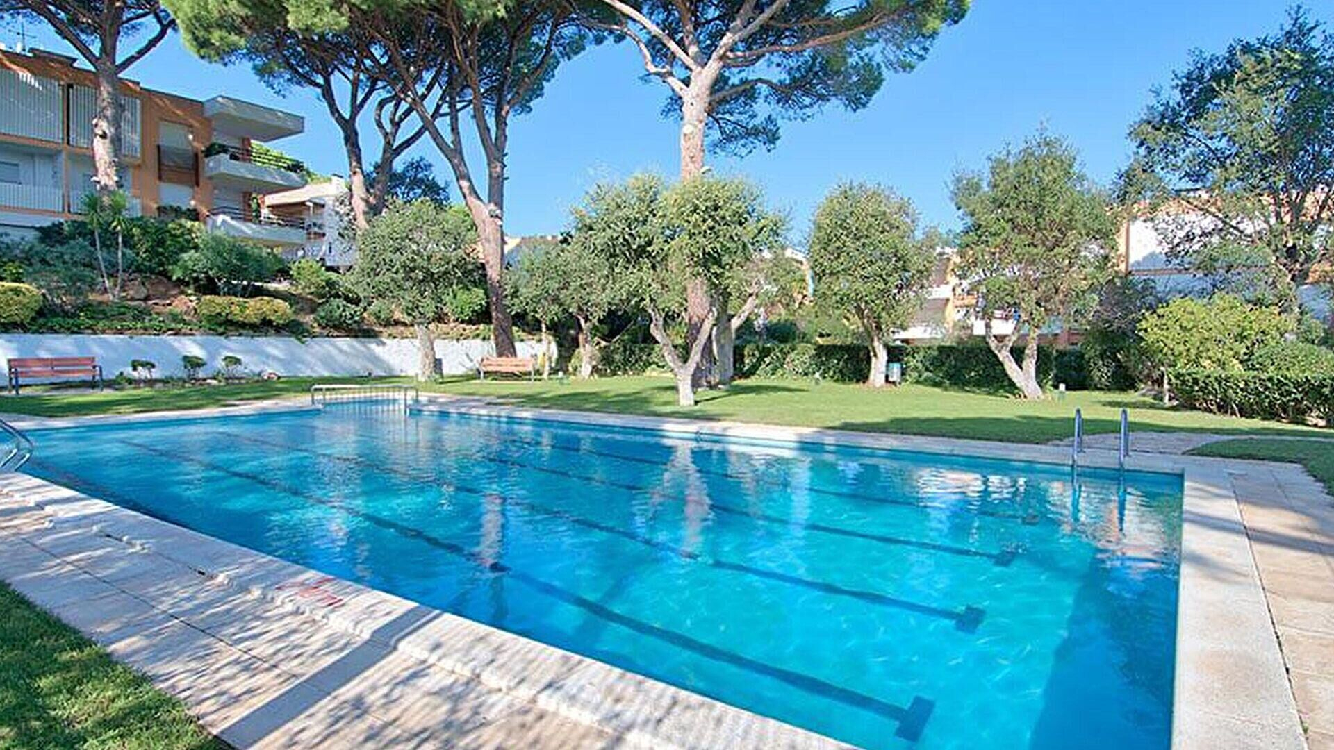 Privater Garten, Gemeinschaftsgarten, Gemeinschaftspool, Tennisplatz und Abstellraum.