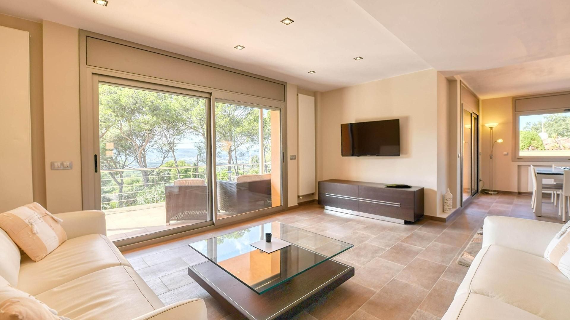 Etage 0- Wohnzimmer-esszimmer mit kalte und heisse klimaanlage mit unabhängigem thermostat, ausgang zur terrasse und ausgang zum privaten garten.