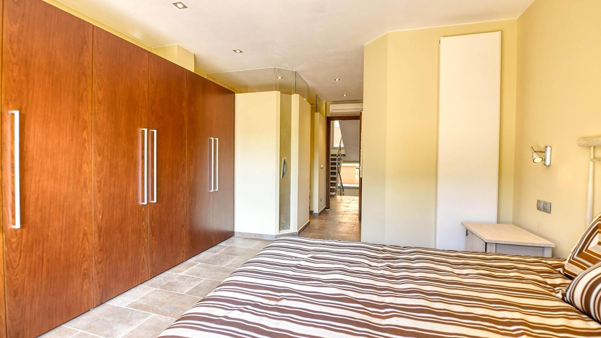Etage -1- Schlafzimmer mit 1 doppelbett und kalte und heisse klimaanlage mit unabhängigem thermostat.