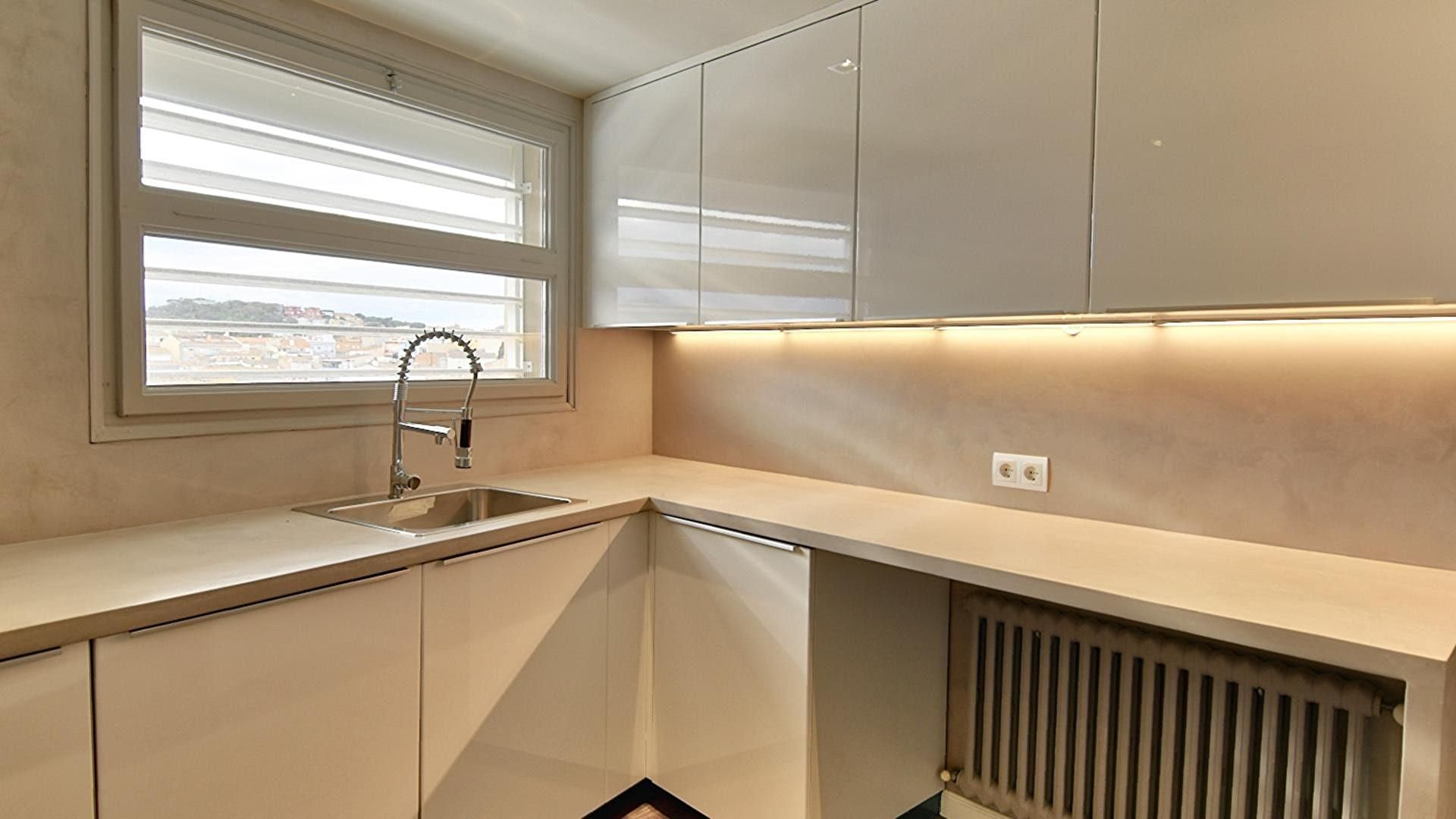 Terrasse, Wohnzimmer-Esszimmer, Küche-Office, 3 Schlafzimmer und 2 Bäder mit Dusche.