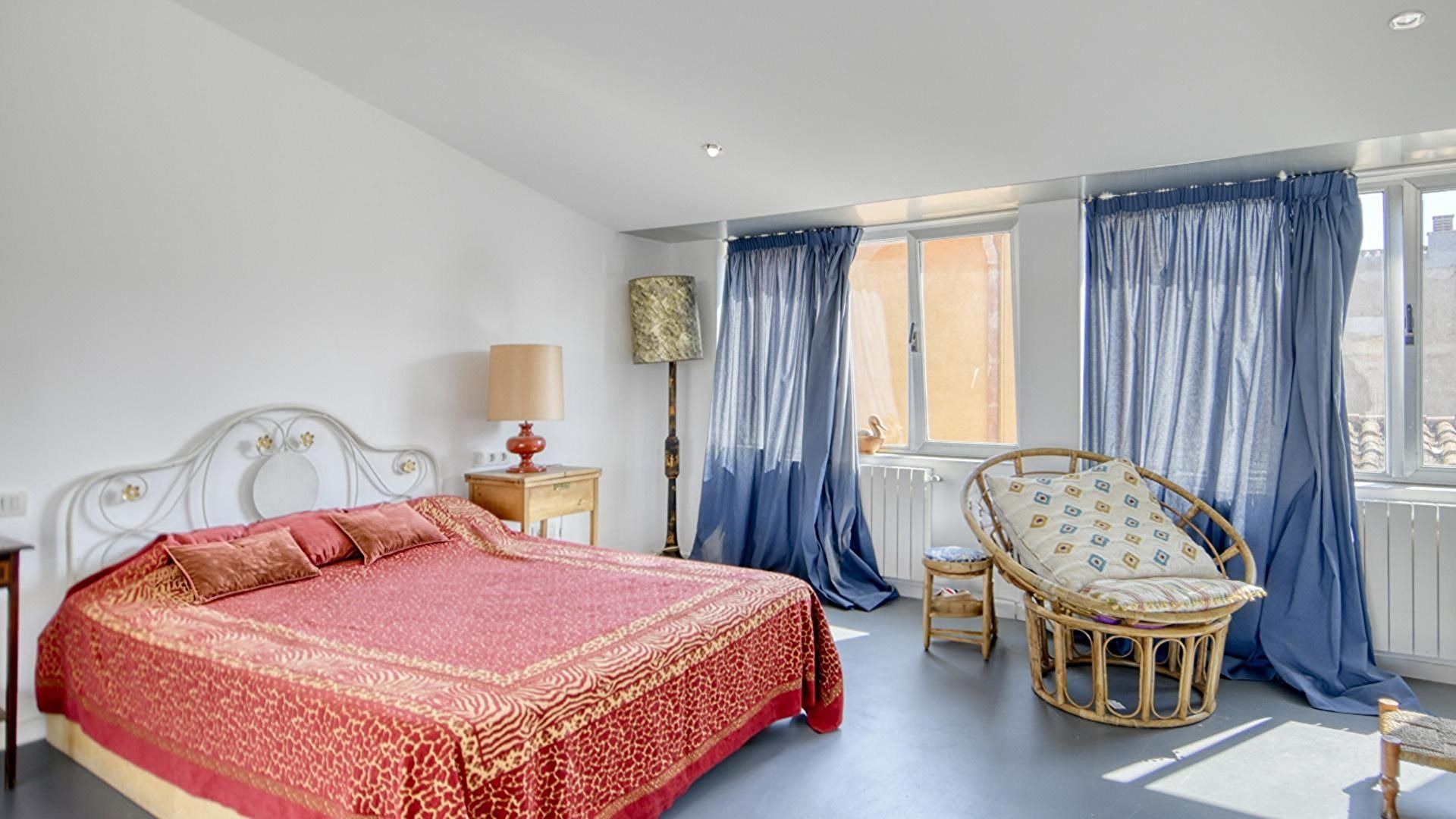 Etage 1- Schlafzimmer mit 1 doppelbett und ausgang zur terrasse.