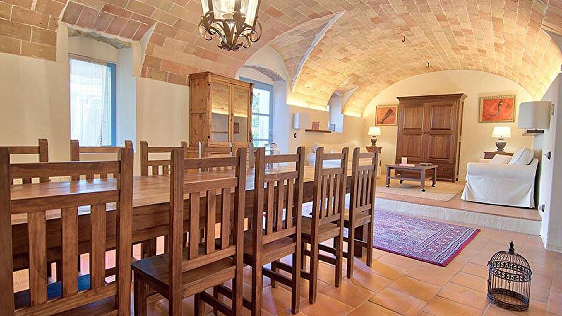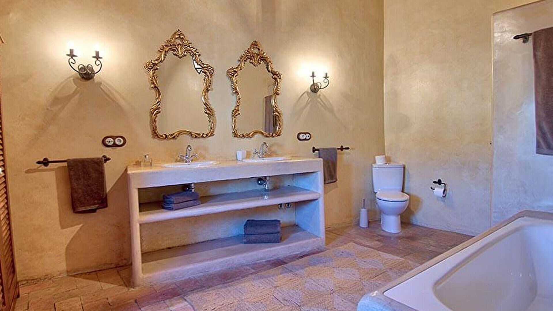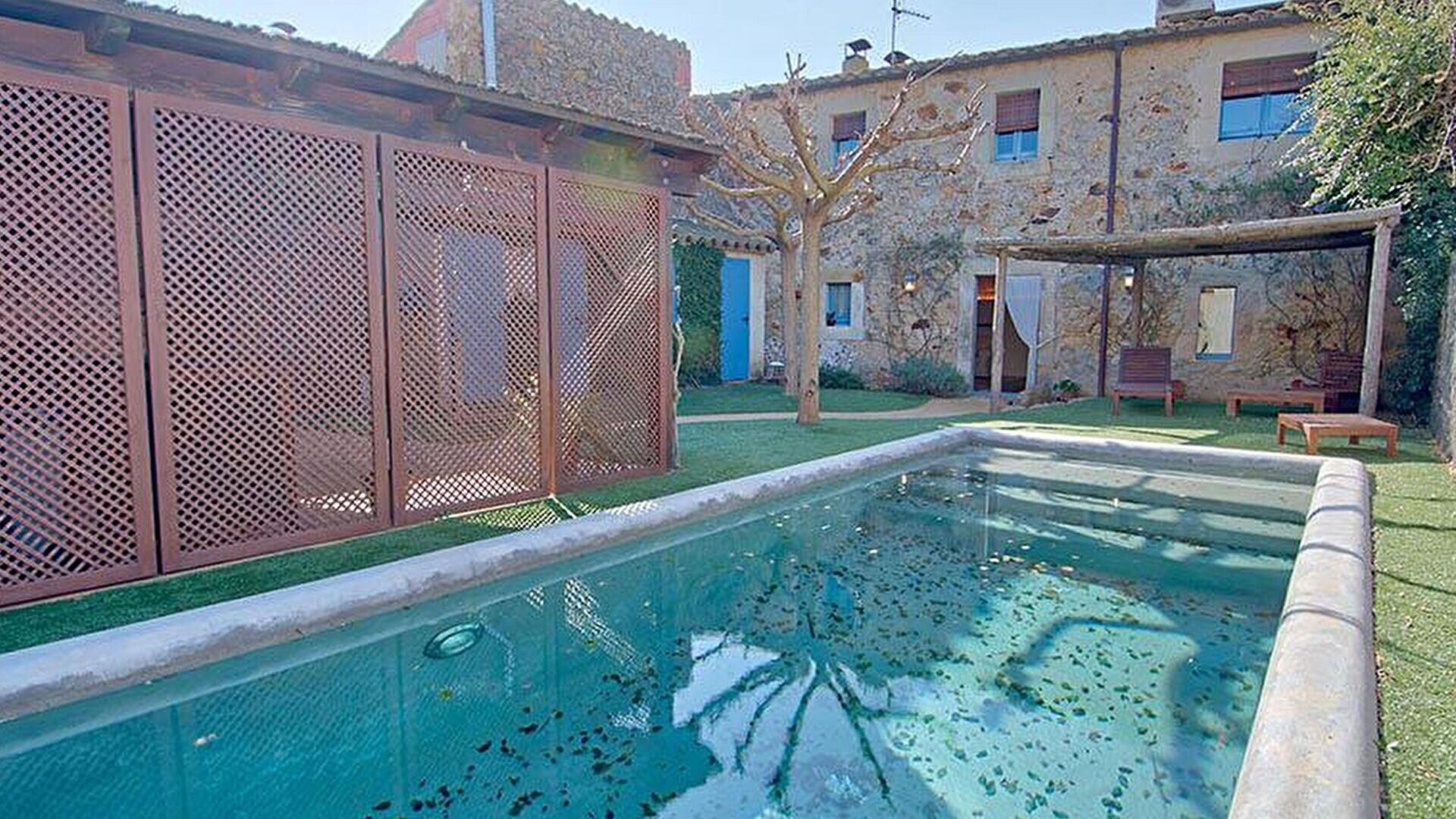 Garten mit Pool, Veranda, Chill-out, Wohnzimmer-Esszimmer, Wohnzimmer, Küche-Office, 3 Schlafzimmer, 1 Bad mit Badewanne, Dusche, 1 Toilette, Ankleideraum und Büro.