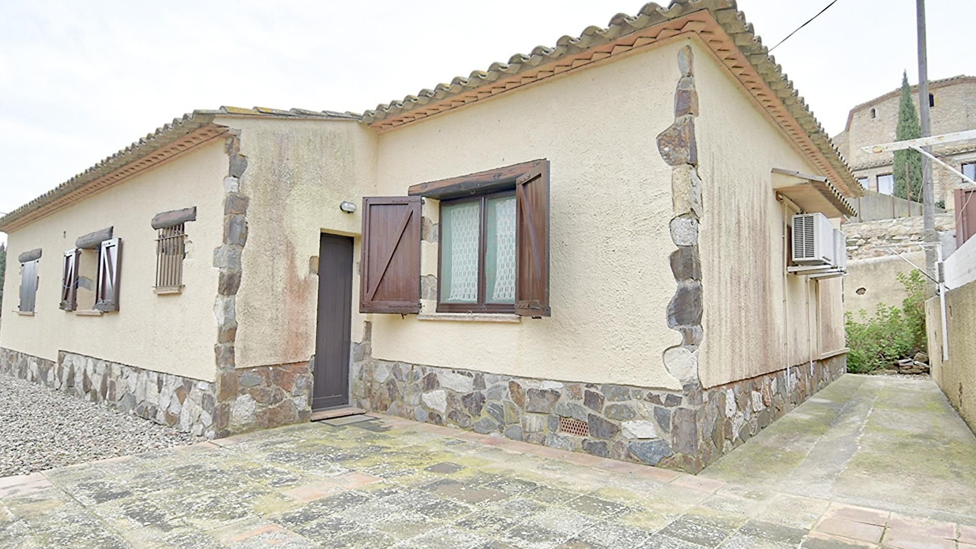 Garten, Veranda, Wohnzimmer-Esszimmer, Küche-Office, 3 Schlafzimmer, 1 Bad mit Dusche und Garage.