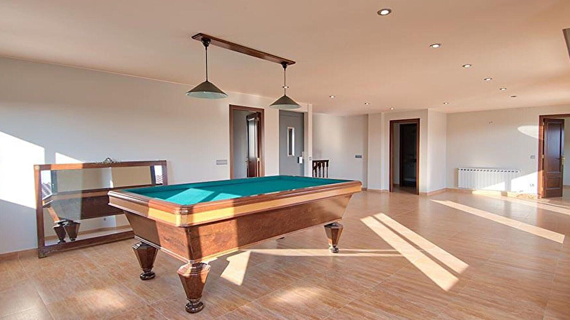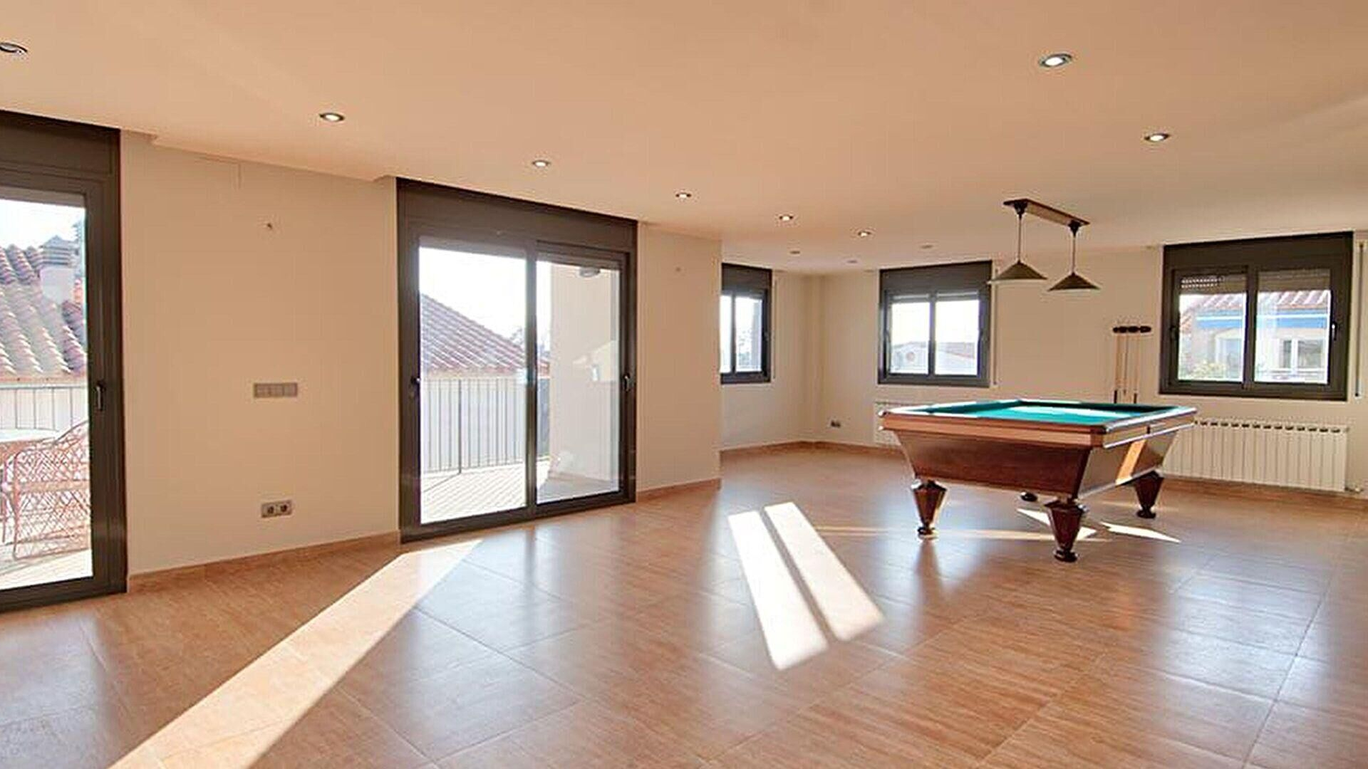 Terrasse, Patio, Wohnzimmer-Esszimmer, Wohnzimmer, Küche, 4 Schlafzimmer, 4 Bäder mit Dusche, Speiseschrank, Keller, Garage und Büro.