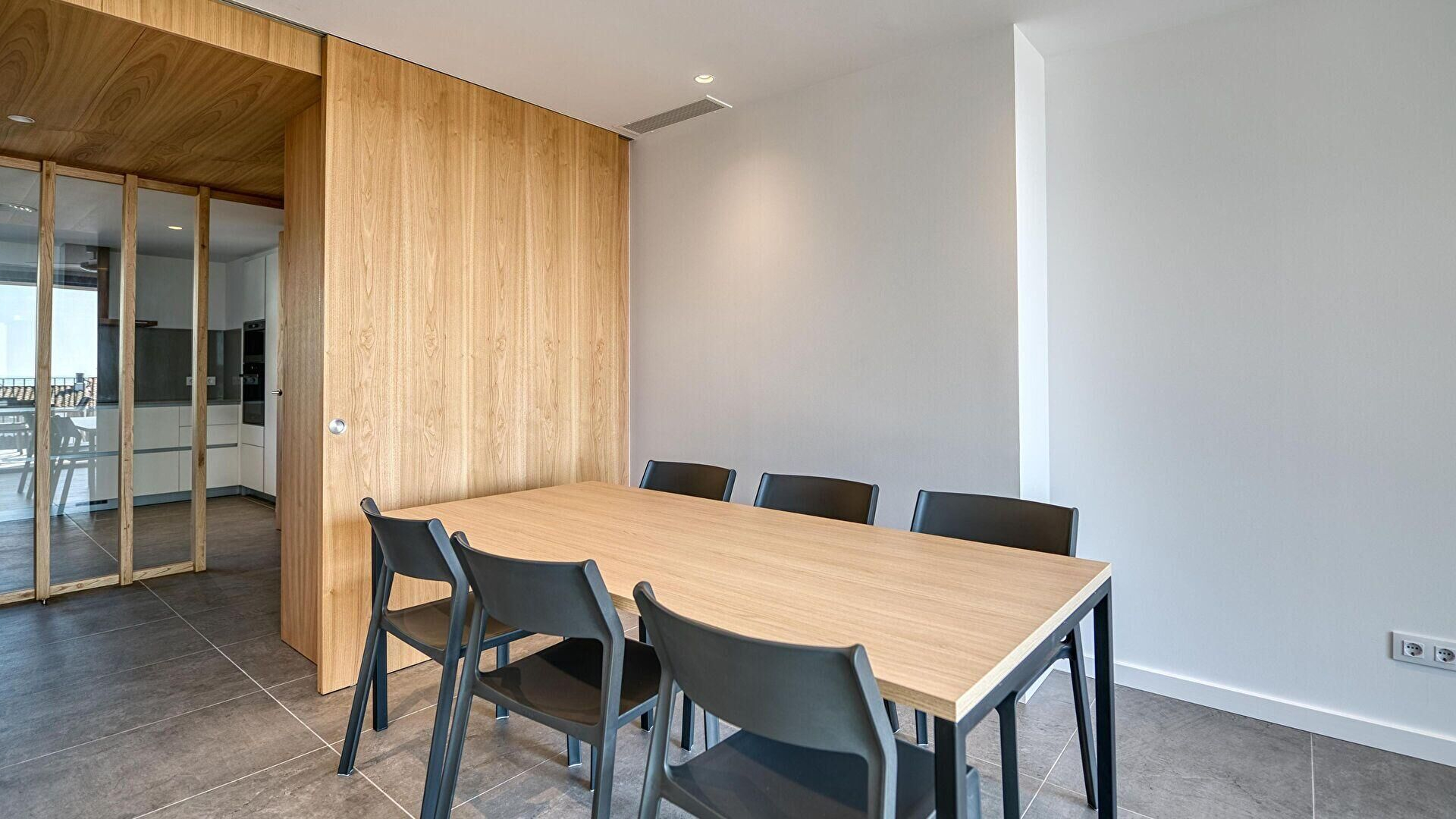 - Cuina office amb placa de cocció vitroceràmica, microones, forn, rentaplats i nevera.