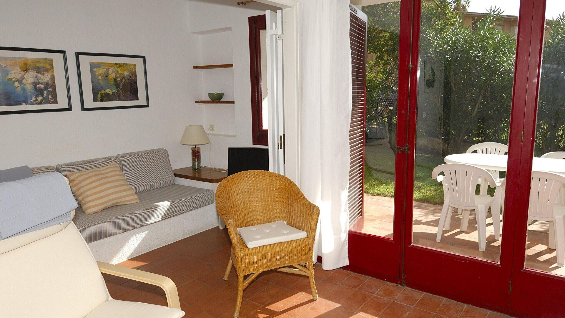 - Menjador-estar amb 1 sofà llit per a 2 persones, llar de foc, sortida al jardí privat, sortida a la terrassa i televisor.