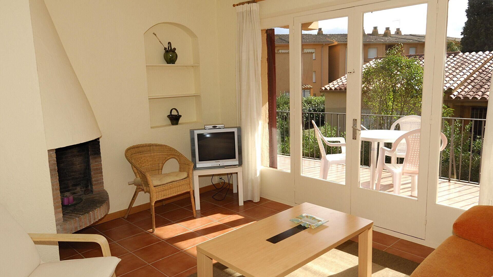 - Menjador-estar, llar de foc i televisor.