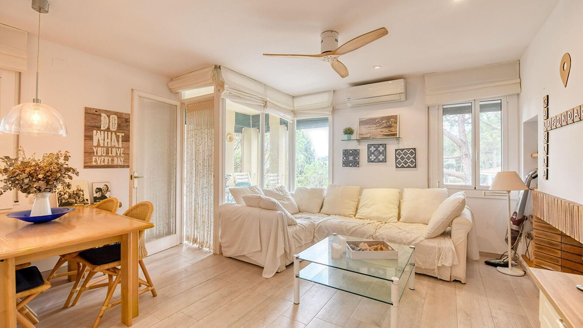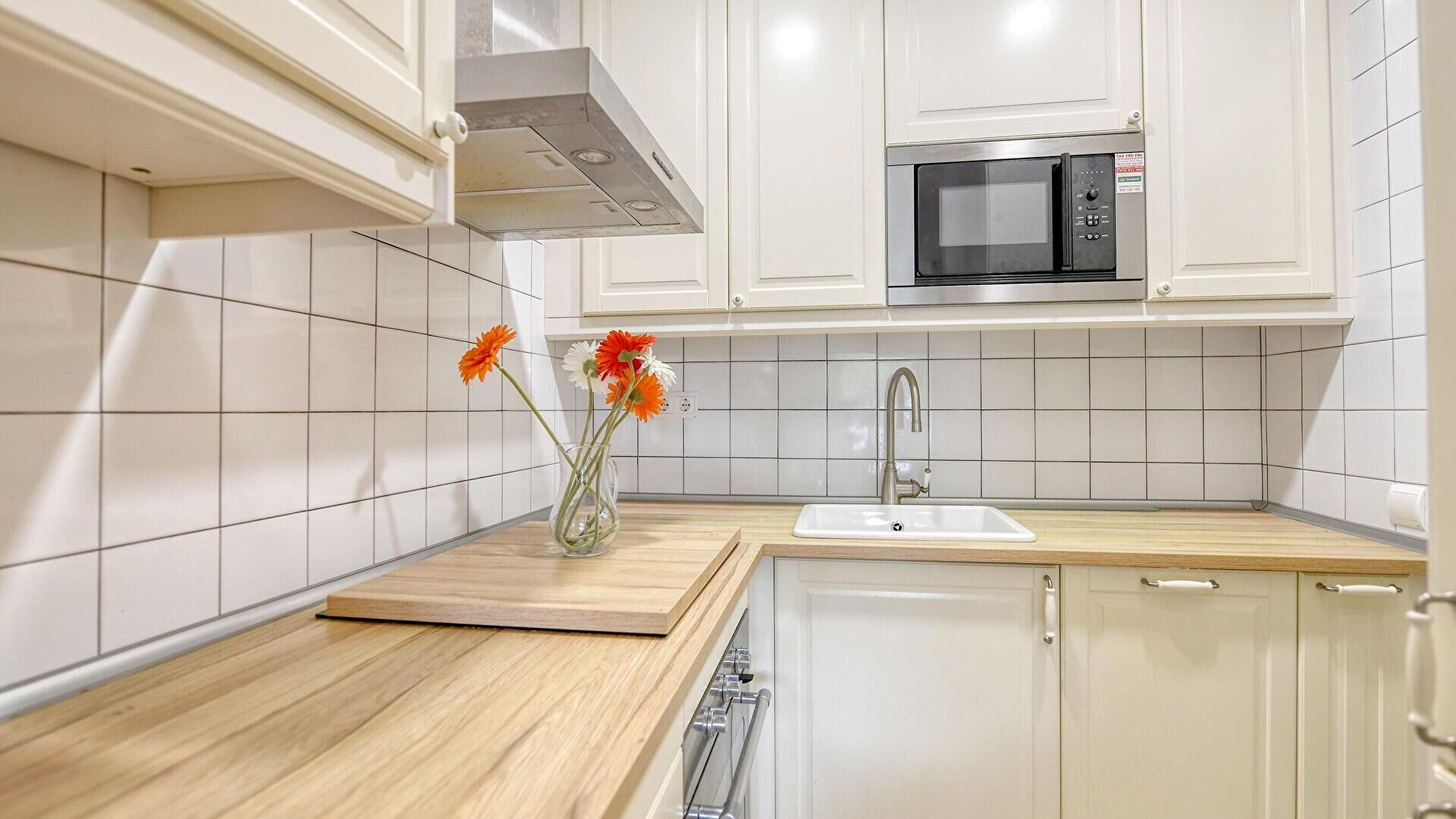 Placa de cocció vitroceràmica, forn, microones, nevera, congelador, rentadora, rentaplats, secadora, planxa, llar de foc, cafetera, cafetera de càpsules, torradora i aire condicionat al menjador.