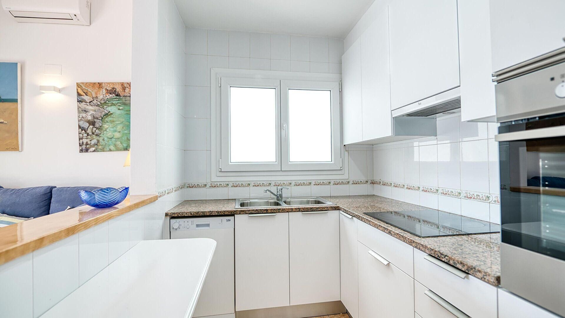 - Cuina amb placa de cocció a gas, forn, nevera i rentaplats.