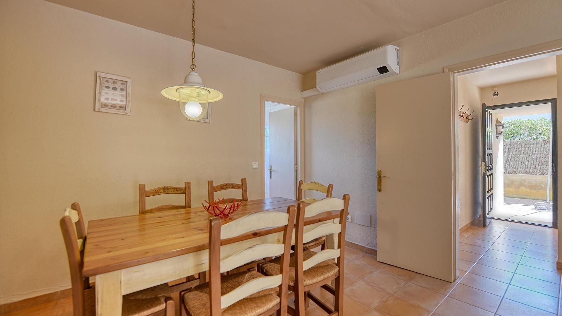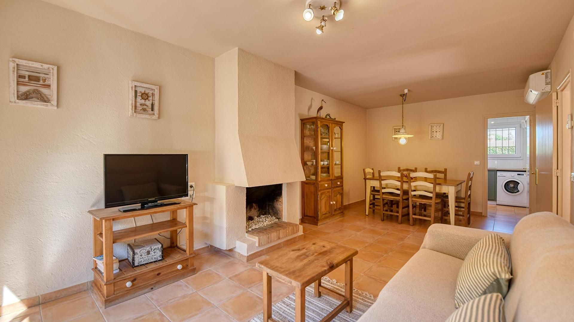 - Menjador-estar, llar de foc, televisor, sortida a la terrassa i aire condicionat fred i calent.