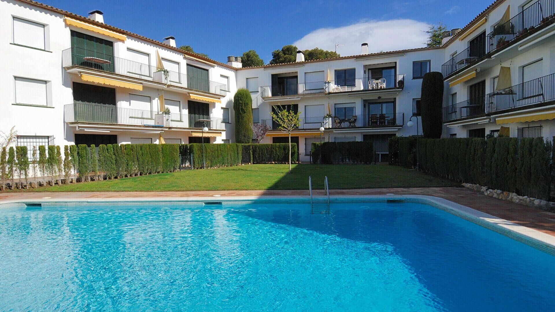 Jardí comunitari, piscina comunitària i mobles de terrassa.