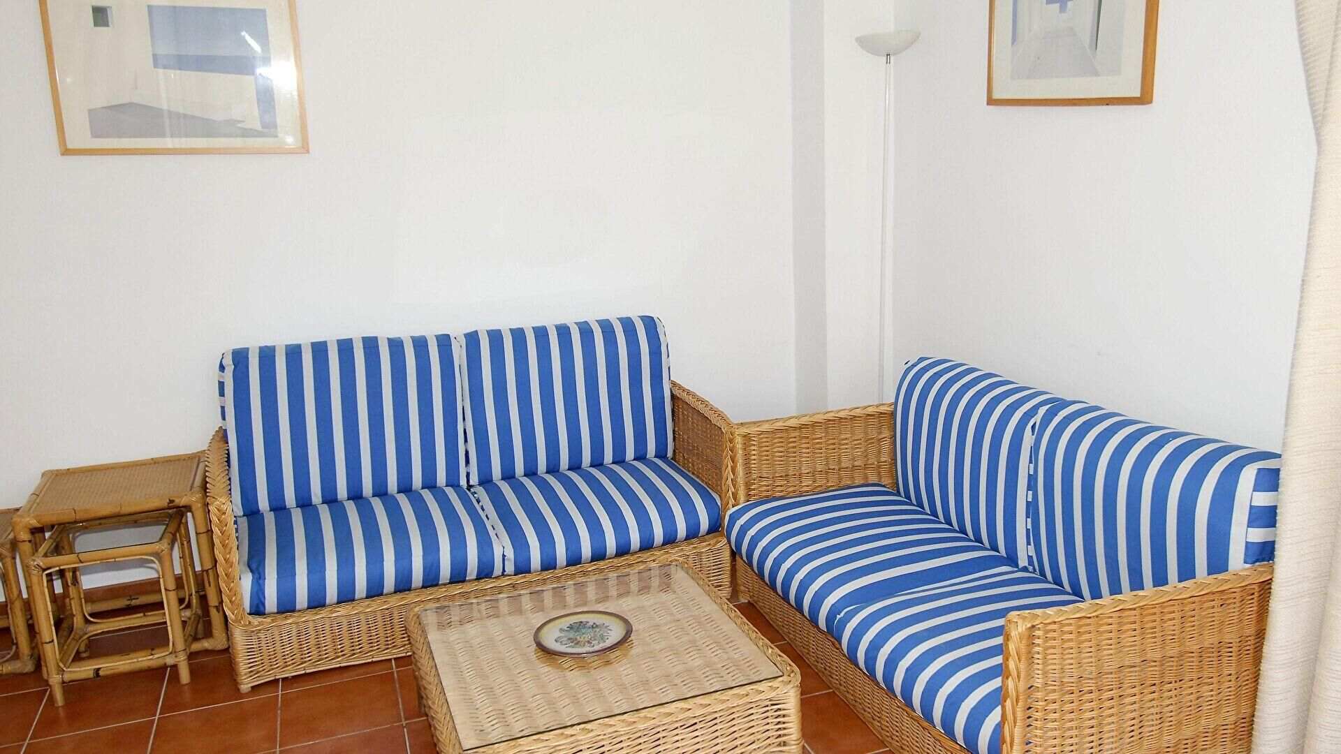 - Menjador-estar amb 1 sofà llit individual, sortida al jardí comunitari, sortida a la terrassa i televisor.