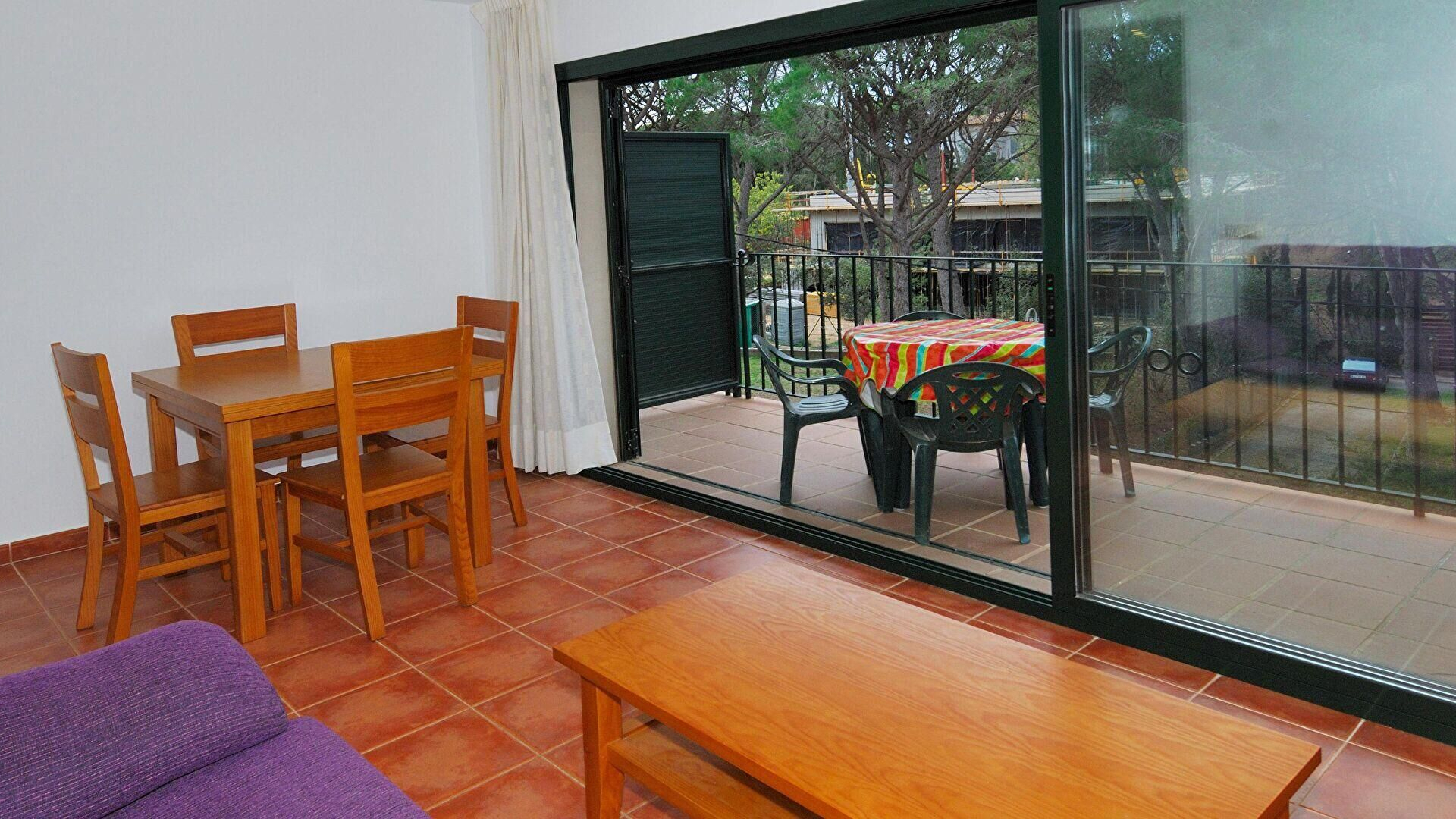 - Menjador, televisor i sortida a la terrassa.