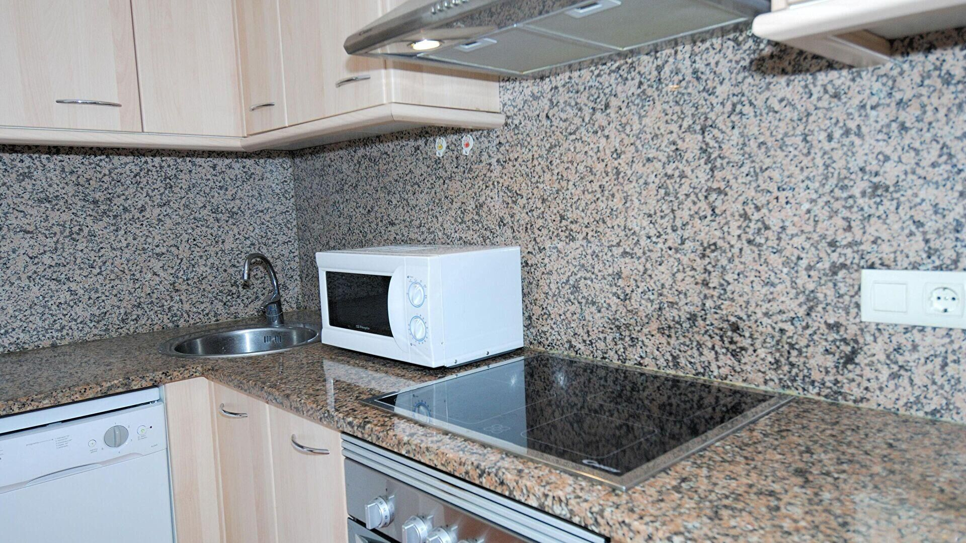 - Cuina amb placa de cocció vitroceràmica i nevera.