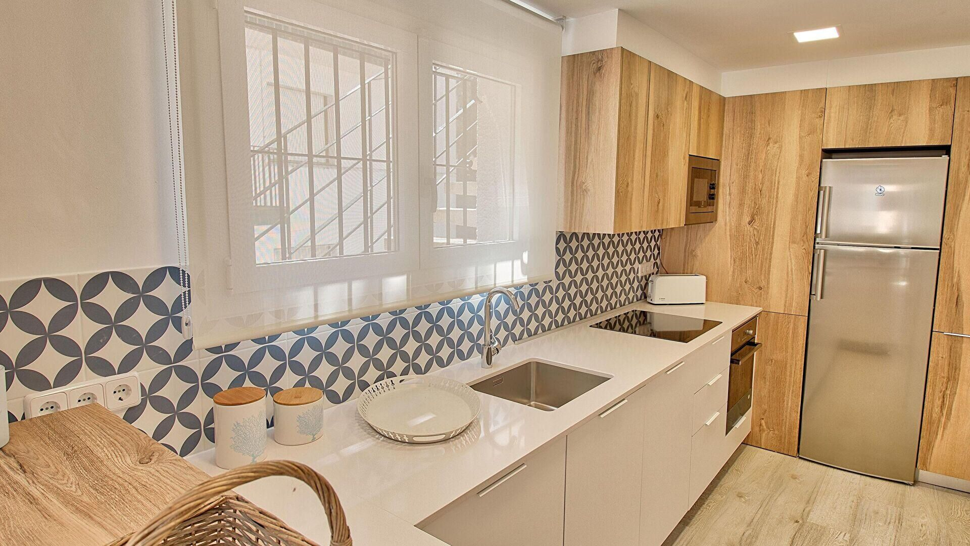 - Cuina amb forn, microones, nevera, rentadora, placa de cocció vitrocerà mica i rentaplats.