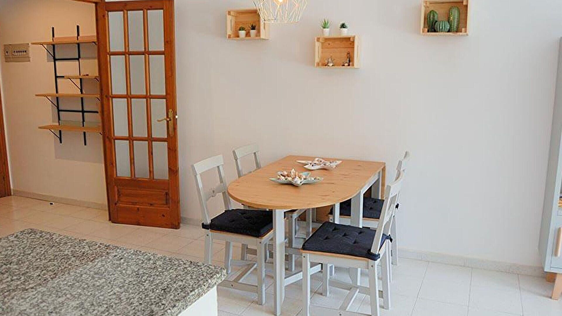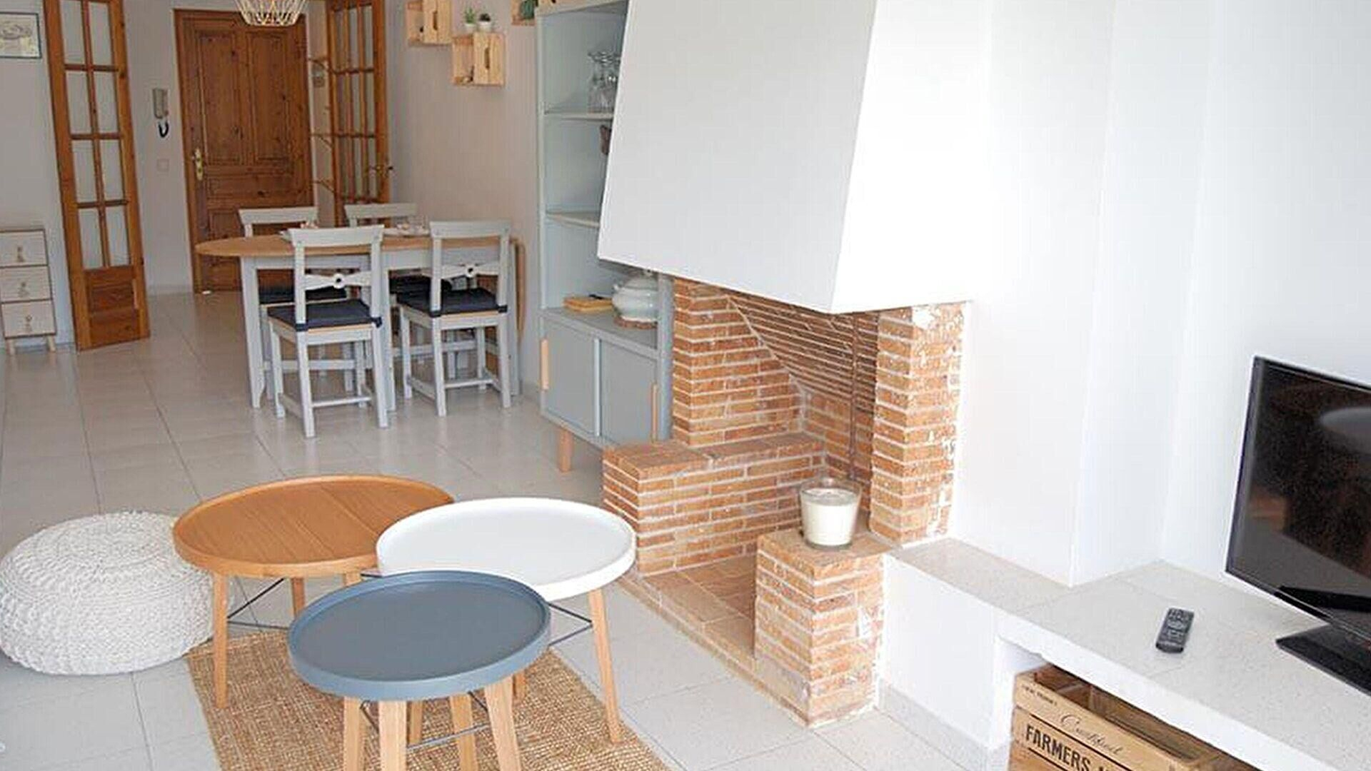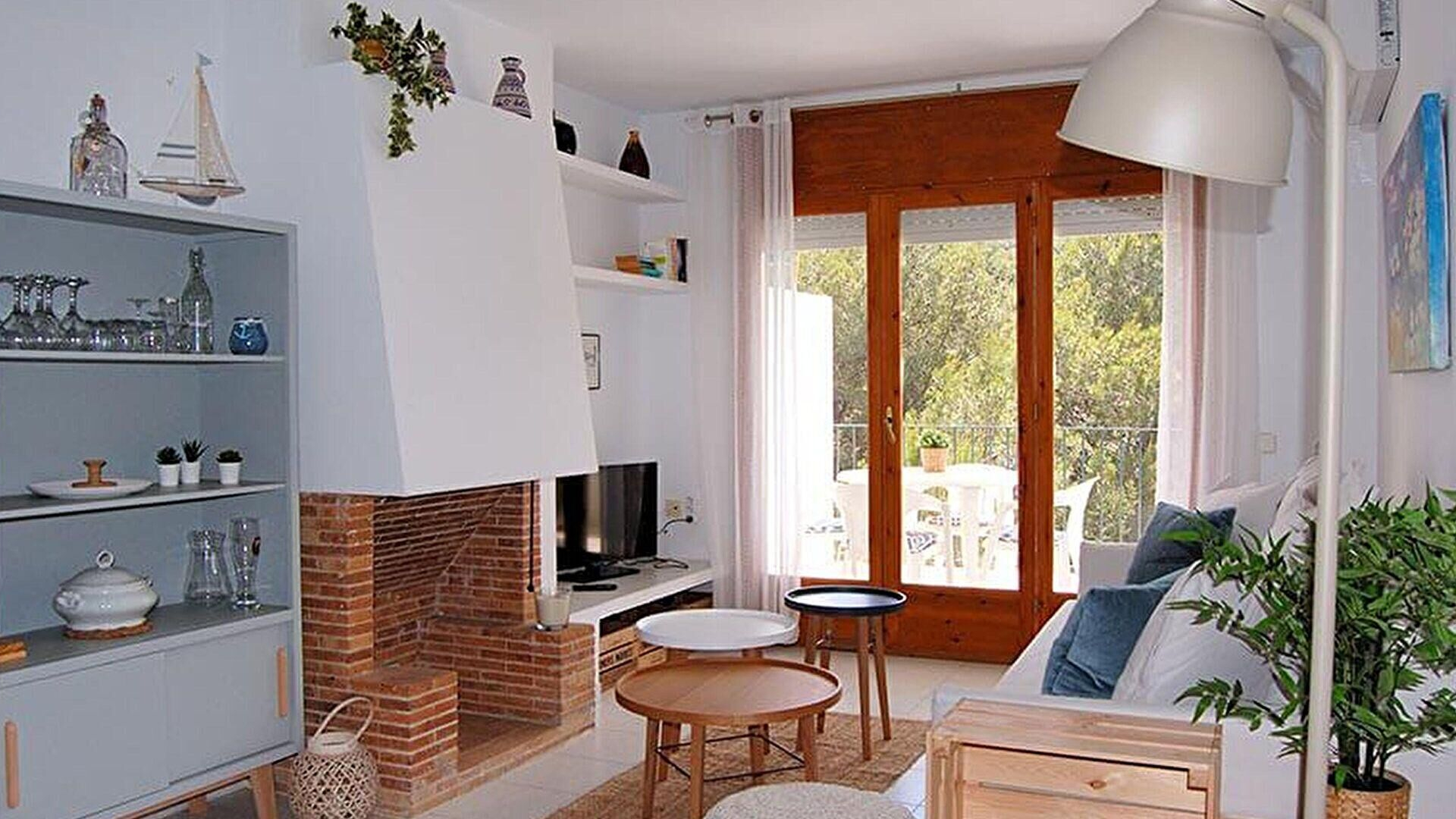 - Menjador amb 1 sofà llit per a 2 persones, televisor, llar de foc, sortida a la terrassa i aire condicionat fred i calent.