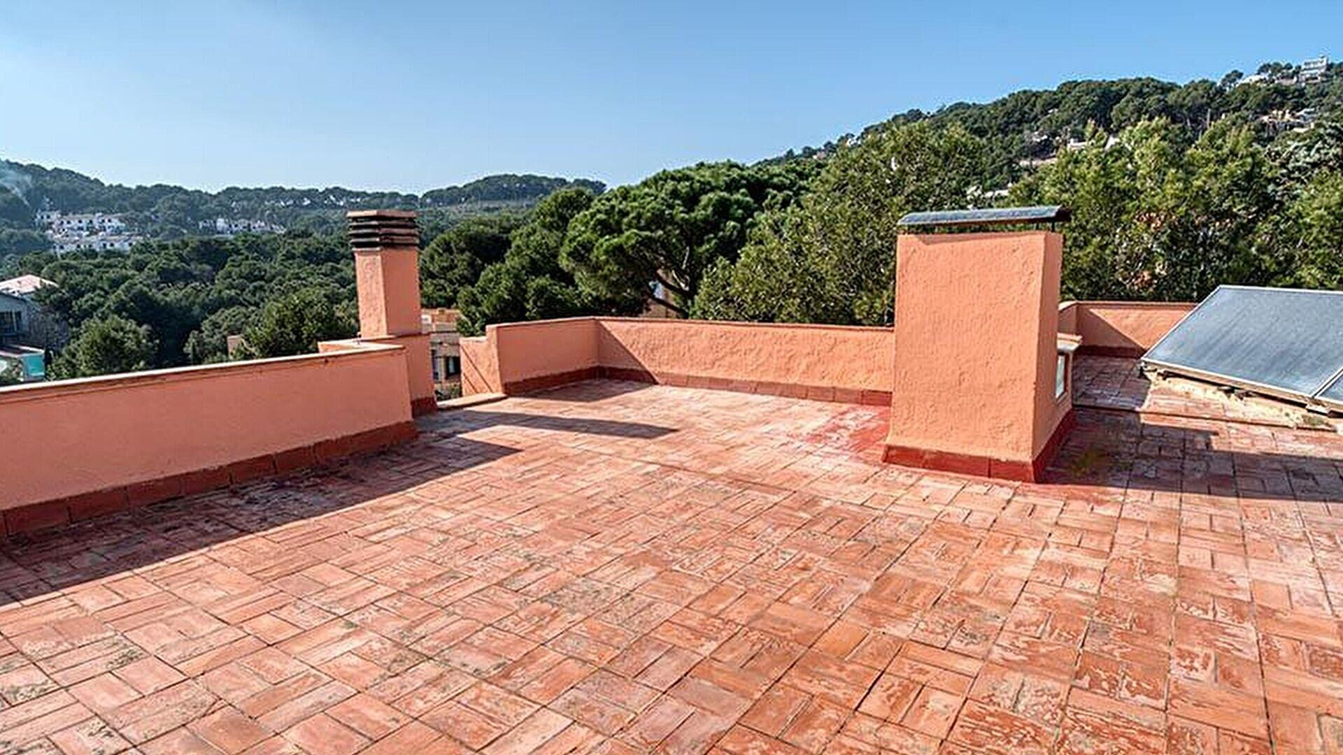 Terrassa, terrassa-solàrium, menjador-estar, cuina oberta, 3 dormitoris, 1 bany amb banyera i 1 bany amb dutxa.