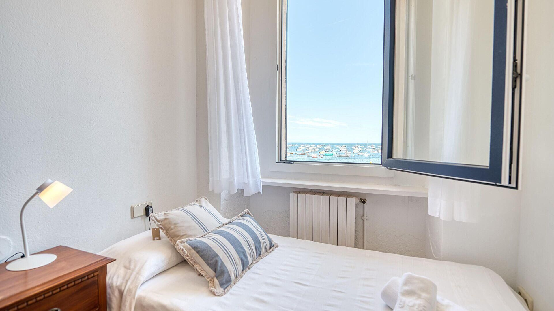 - Dormitori amb 1 llit de matrimoni, vistes al mar i sortida al balcó.