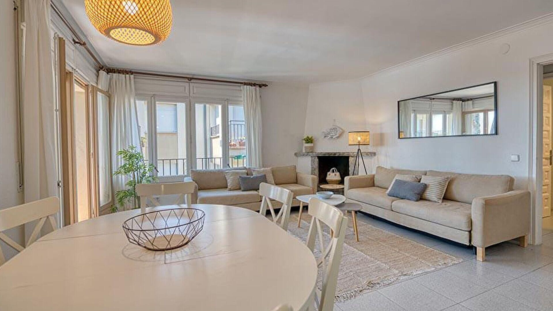• Menjador-estar amb 1 sofà llit per a 2 persones, llar de foc, televisor i sortida al balcó.