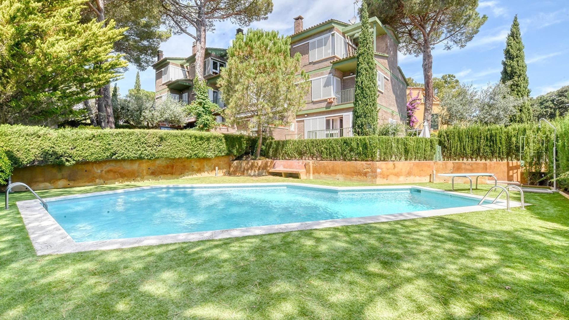 Tranquil.la casa aparellada pràctica, de 3 plantes amb jardí privat i piscina comunitària a prop de la zona residencial de Farena a Mont-ras