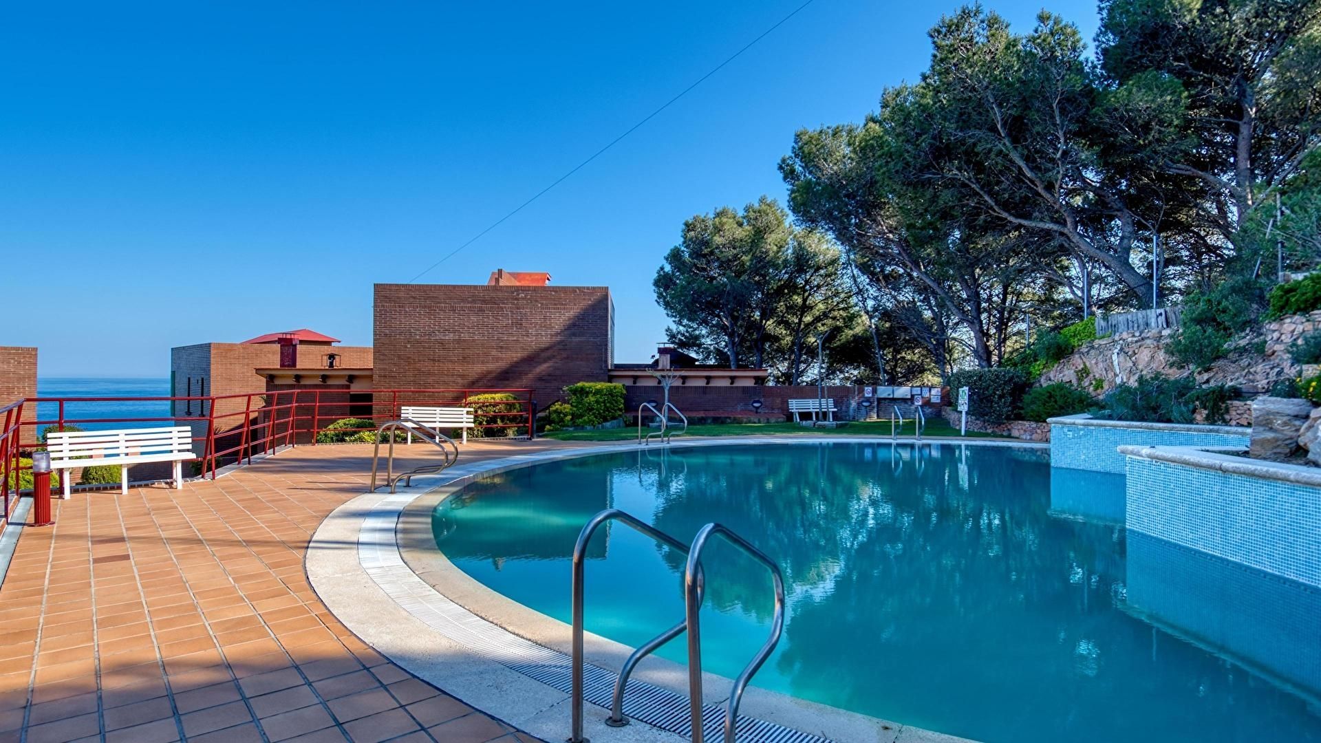 Jardà comunitari, piscina comunità ria i mobles de terrassa.