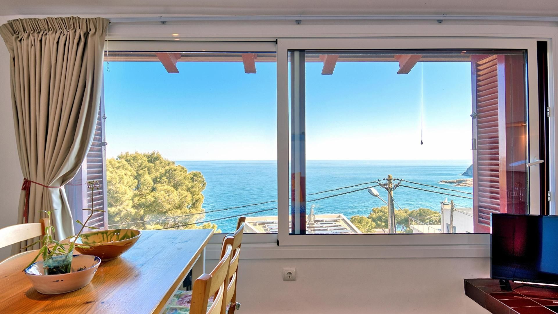 - Menjador-estar amb televisor, aire condicionat fred i calent, vistes al mar i sortida al jardà privat.