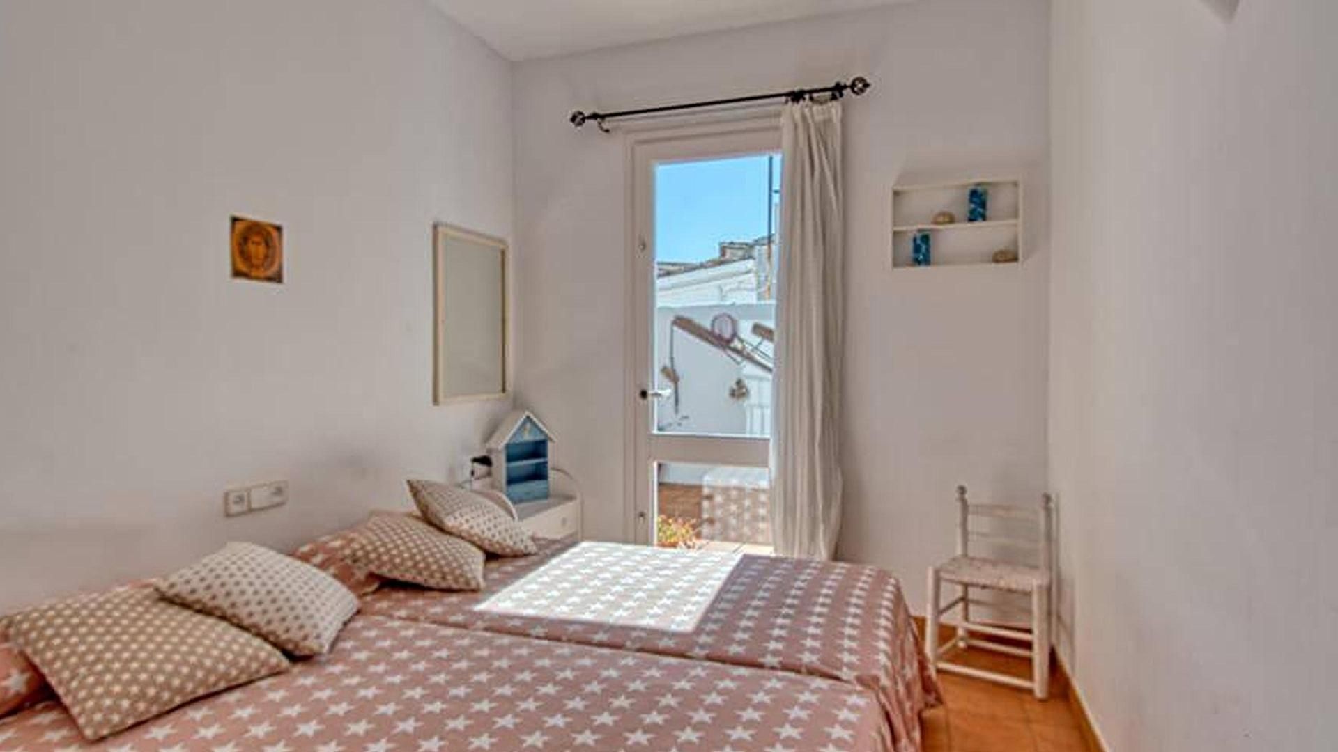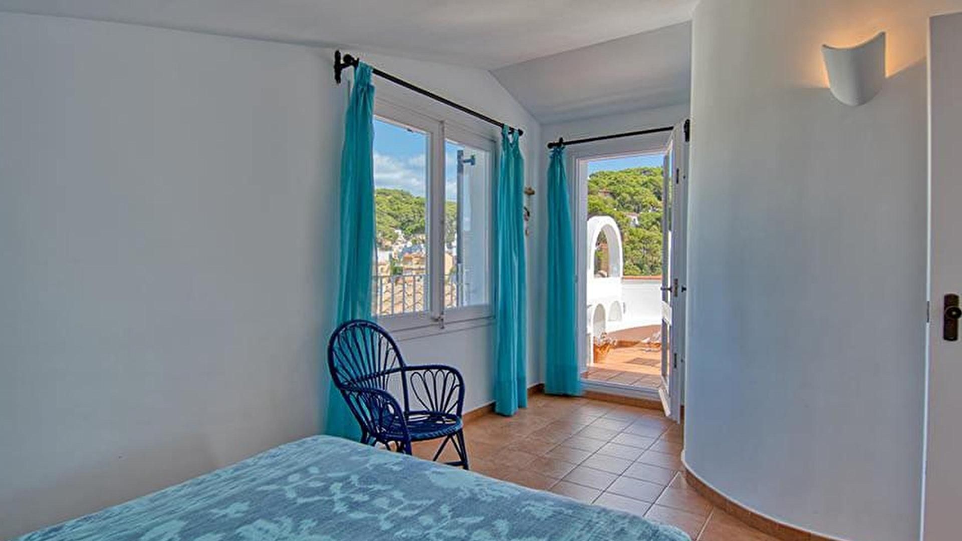 - Dormitori amb 1 llit de matrimoni, vistes al mar i sortida a la terrassa-solàrium.