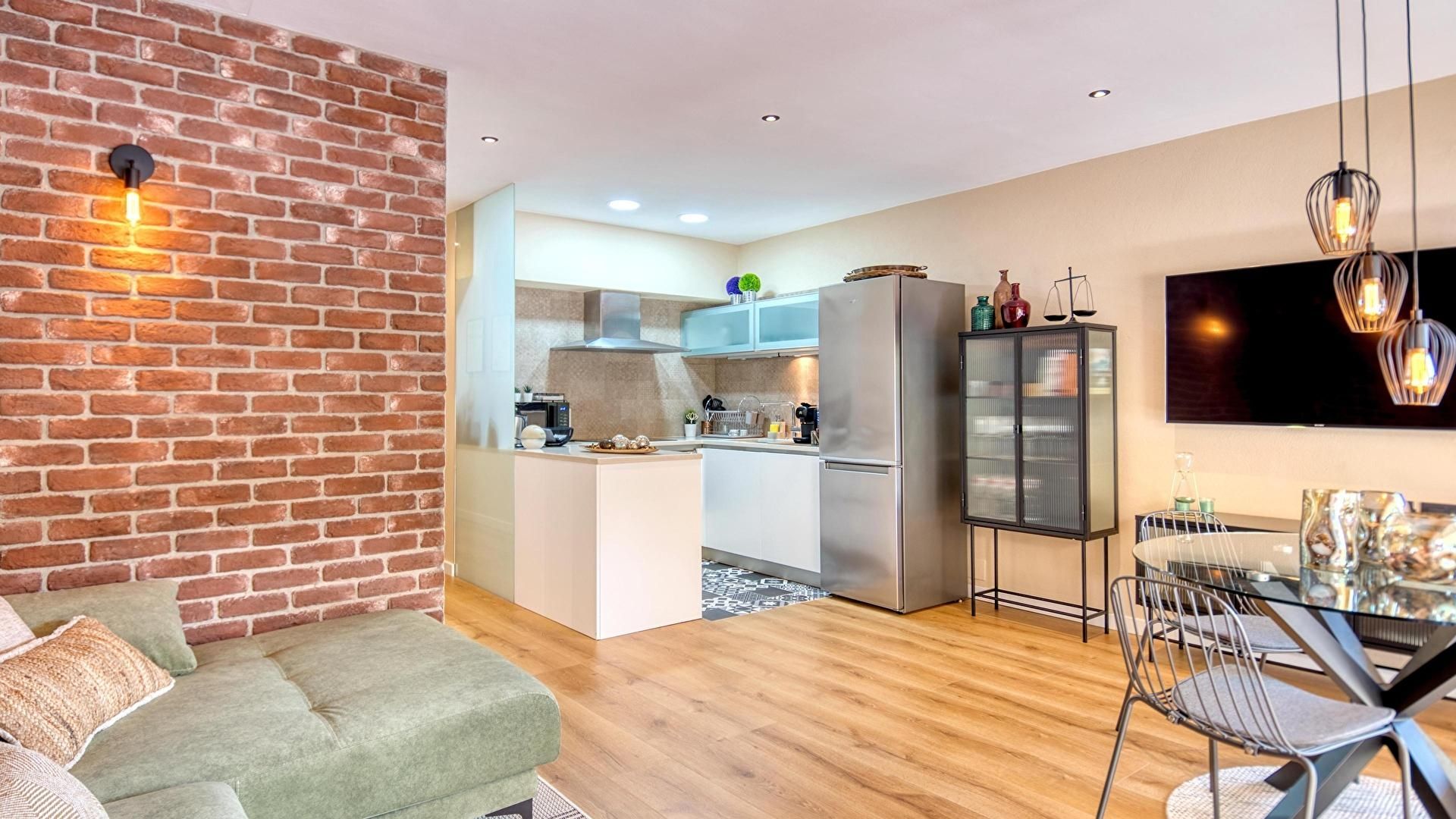 • Cuina oberta amb placa de cocció inducció, forn, microones i sortida a la terrassa-solàrium.
